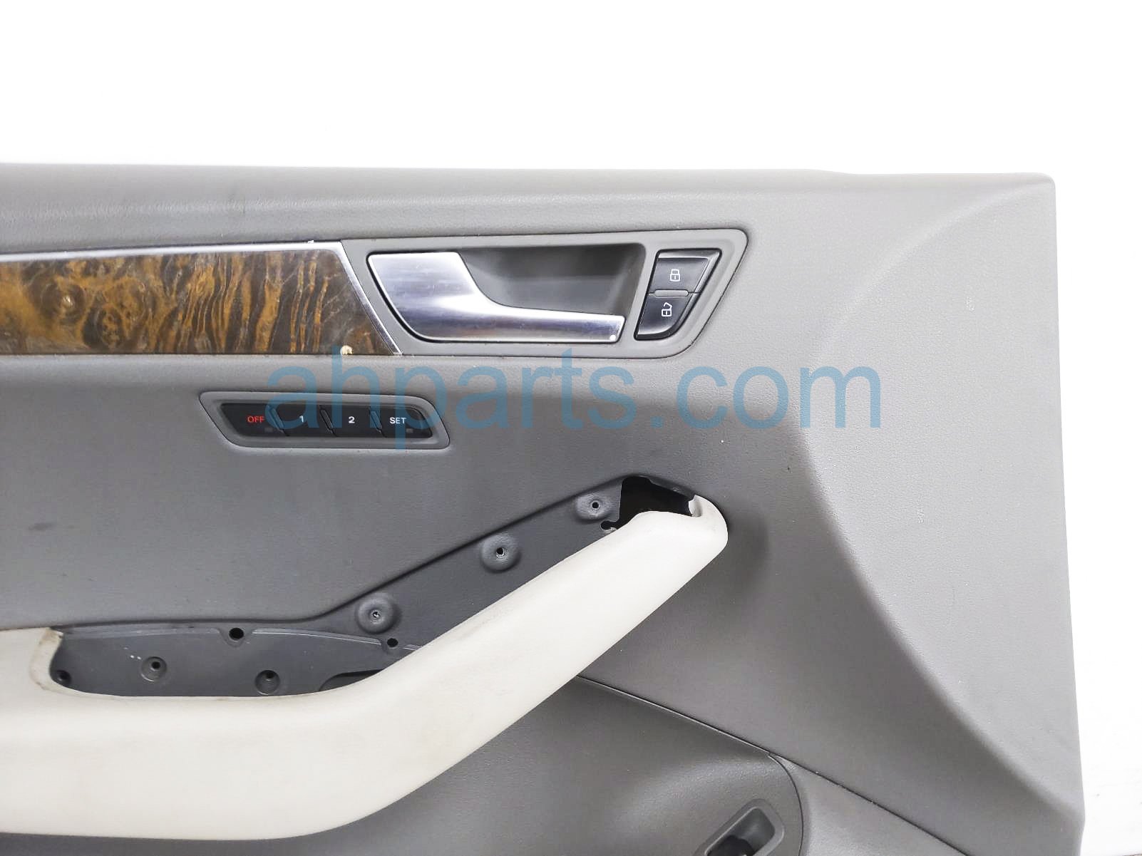 2011 Audi Q5 Audi front liner front driver inside door trim panel - grey is a used item with a 1 year warranty. This OEM replacement front liner front driver inside door trim panel - grey is genuine and has part numbers 8R1-867-103-E-1CR, and 8R1867103E1CR. This Audi part sells for $50.