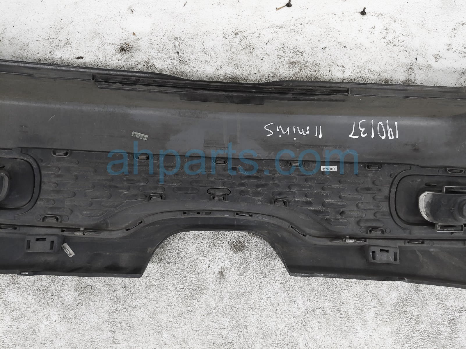 2011 BMW Mini Cooper rear bumper cover - black is a used item with a 1 year warranty. This OEM replacement rear bumper cover - black is genuine and has part numbers 51-12-7-264-358, 51127264358, 51-12-7-260-590, 51127260590, 63-24-7-255-922, and 63247255922. This BMW part sells for $248. This item has the following note: 'This item has scratches al over the face of the bumper - grade b.'
