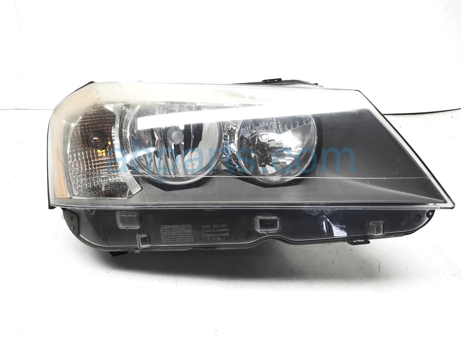 2011 BMW X3 headlight passenger head lamp / light - is a used item with a 1 year warranty. This OEM replacement headlight passenger head lamp / light - is genuine and has part numbers 63-11-7-222-026, and 63117222026. This BMW part sells for $160. This item has the following note: 'This item has a hazy lens.'