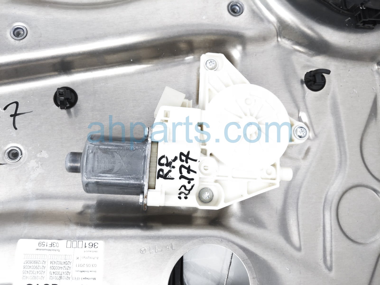2011 Mercedes E350 rear passenger window regulator & motor is a used item with a 1 year warranty. This OEM replacement rear passenger window regulator & motor is genuine and has part numbers 212-730-18-79, 2127301879, 204-820-06-42, and 2048200642. This Mercedes part sells for $69.