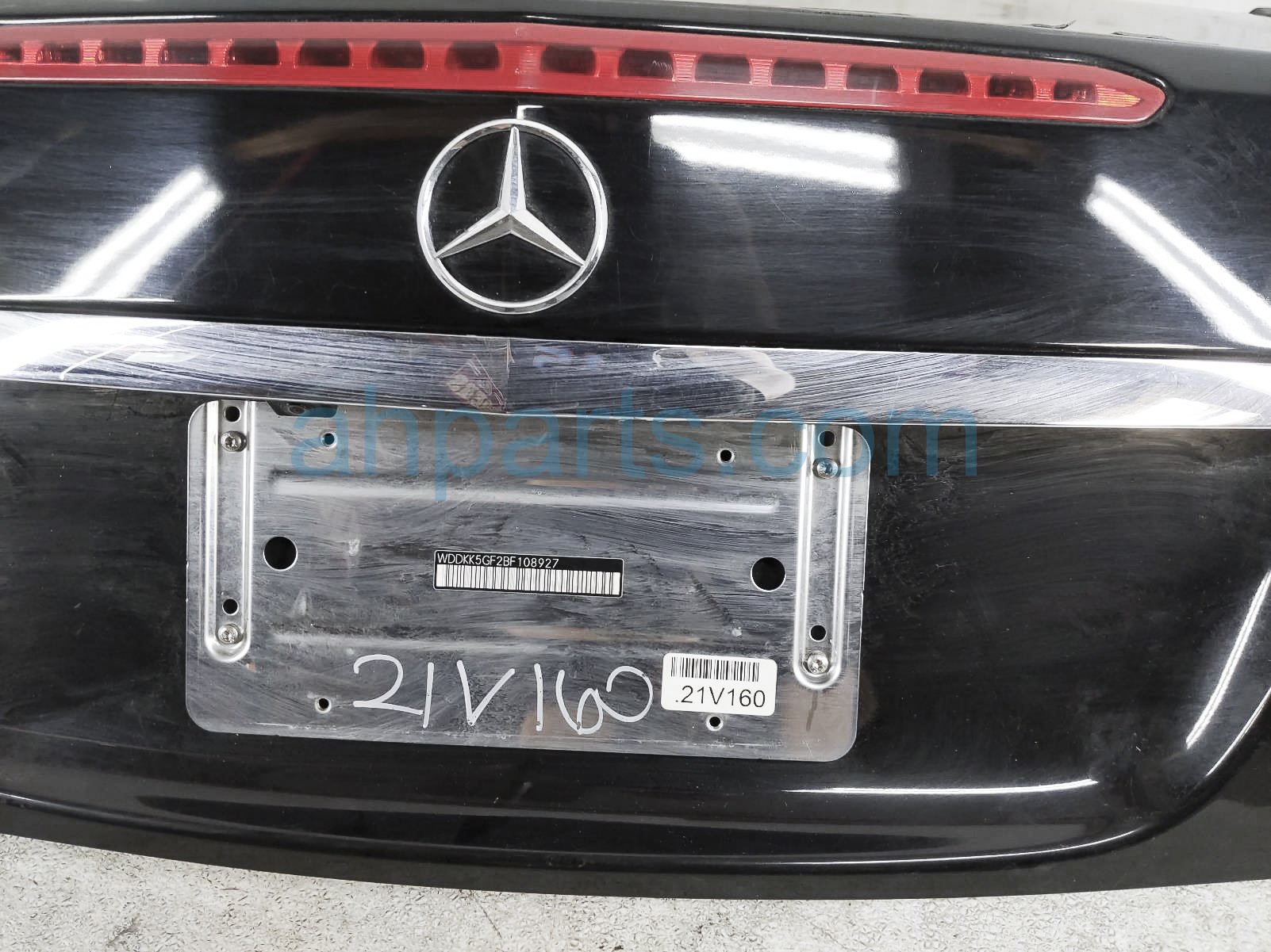 2011 Mercedes E350 trunk / decklid - black (040u) is a used item with a 1 year warranty. This OEM replacement trunk / decklid - black (040u) is genuine and has part numbers 207-690-11-41-9F08, 20769011419F08, 207-750-01-75-64, and 207750017564. This Mercedes part sells for $400. This item has the following note: 'Missing spoiler.'