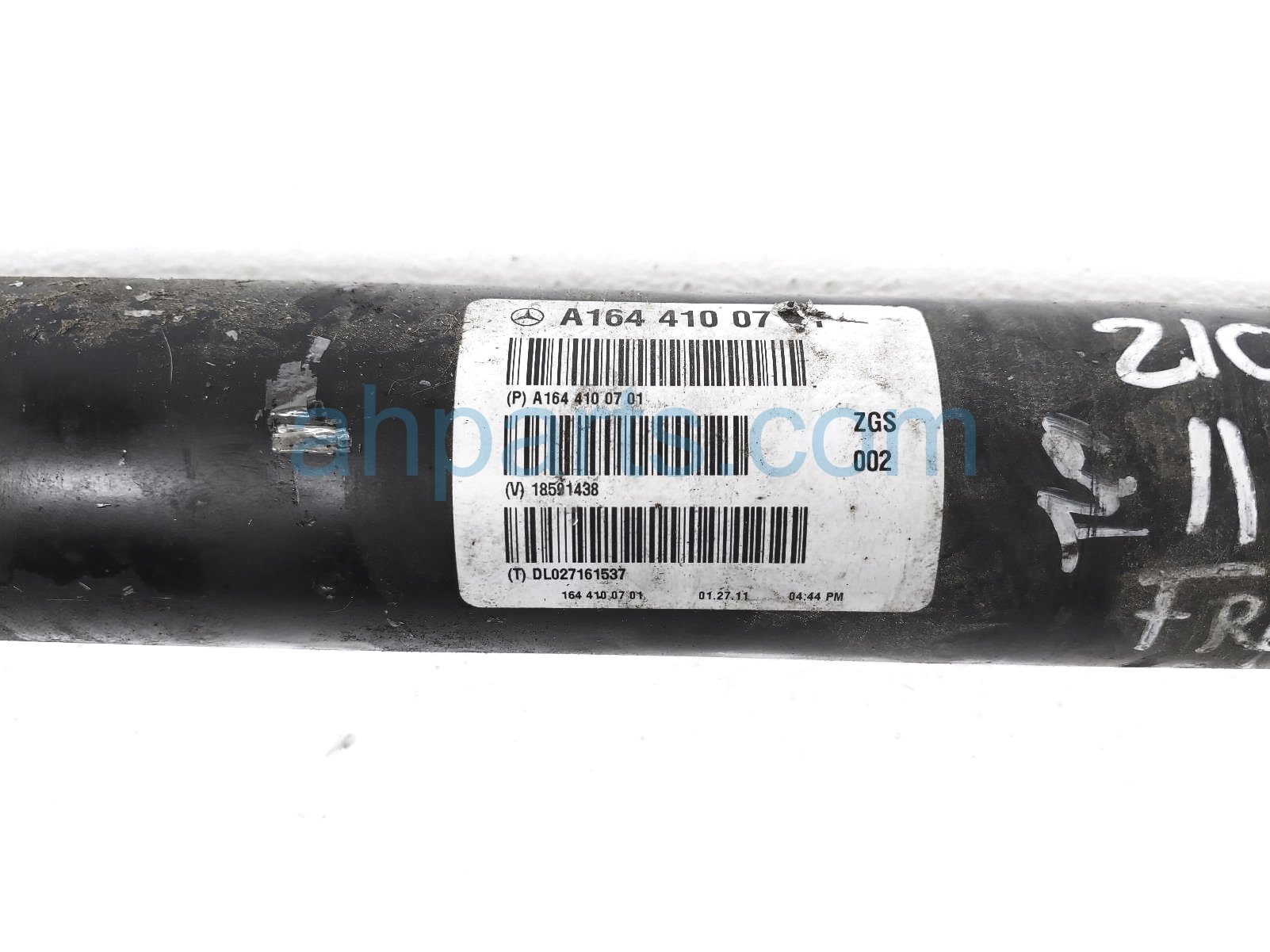 2011 Mercedes GL450 front propeller driveline shaft is a used item with a 1 year warranty. This OEM replacement front propeller driveline shaft is genuine and has part numbers 164-410-07-01, and 1644100701. This Mercedes part sells for $90.