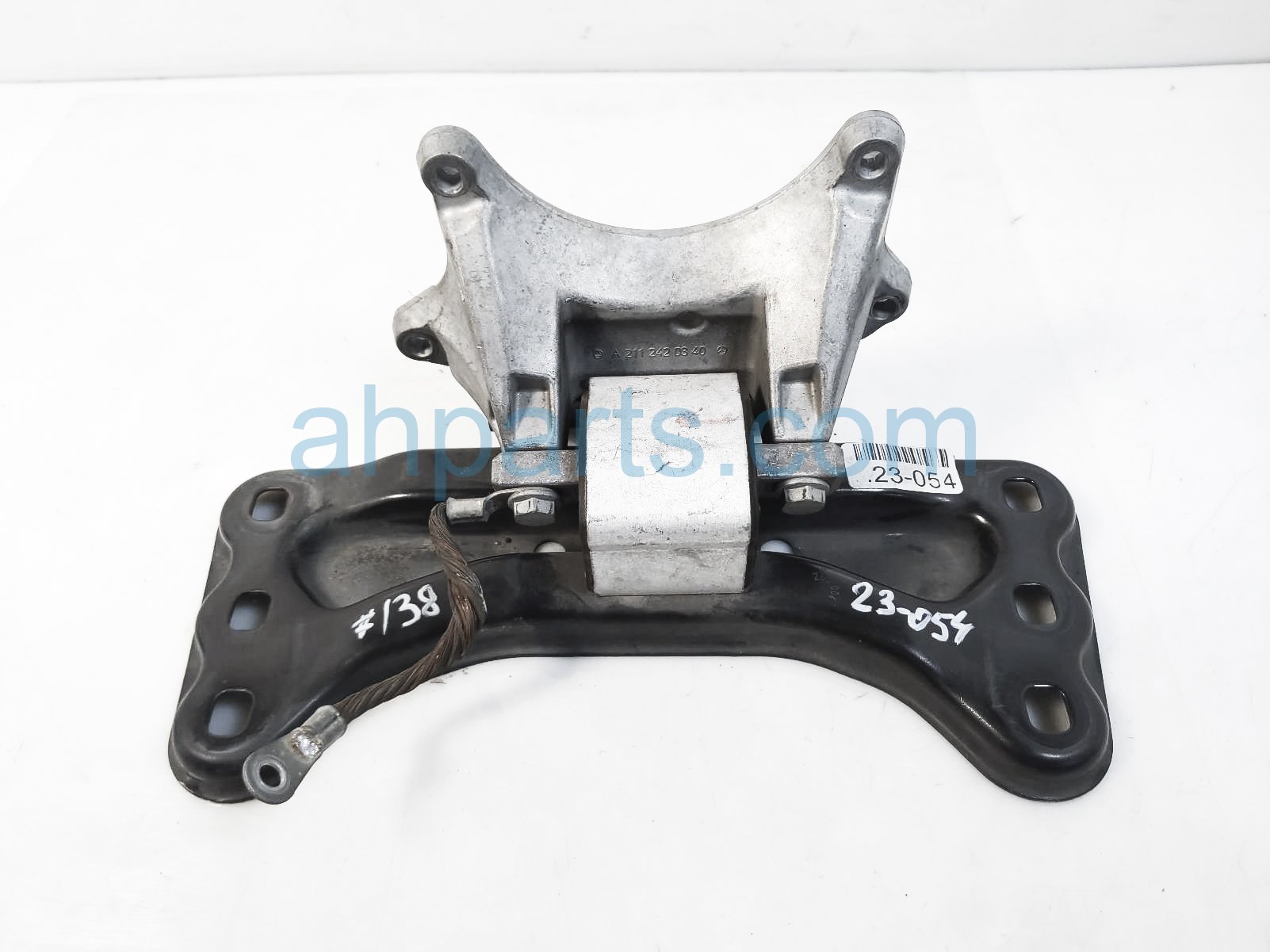 2011 Mercedes SLK300 transmission crossmember & bracket is a used item with a 1 year warranty. This OEM replacement transmission crossmember & bracket is genuine and has part numbers 211-242-03-40, 2112420340, 171-242-04-01, and 1712420401. This Mercedes part sells for $20.