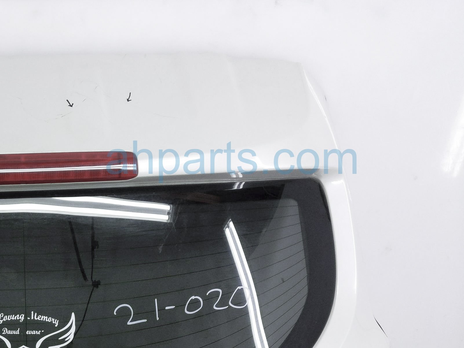 2011 Nissan Murano deck trunk lid lift gate / tail gate - white is a used item with a 1 year warranty. This OEM replacement deck trunk lid lift gate / tail gate - white is genuine and has part numbers KMA00-1AA9D, KMA001AA9D, 26544-1SX0A, 265441SX0A, 26549-1SX0A, and 265491SX0A. This Nissan part sells for $225. This item has the following note: 'Has minor scratches.'