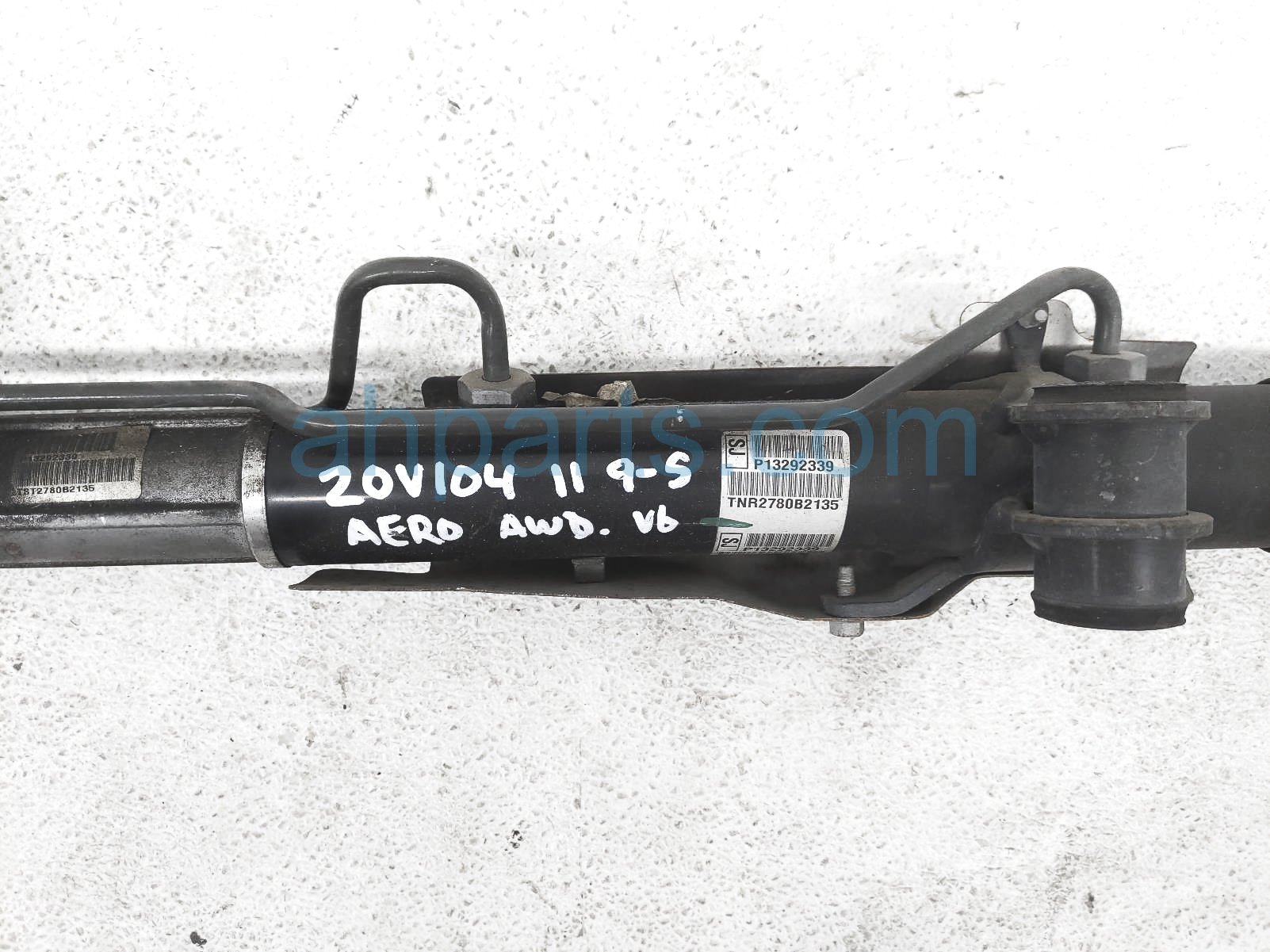 2011 Saab 9-5 pinion / gear box power steering rack and pinon is a used item with a 1 year warranty. This OEM replacement pinion / gear box power steering rack and pinon is genuine and has part numbers 13292339. This Saab part sells for $150. This item has the following note: 'This items inner tie rod is bent a little bit - grade b.'