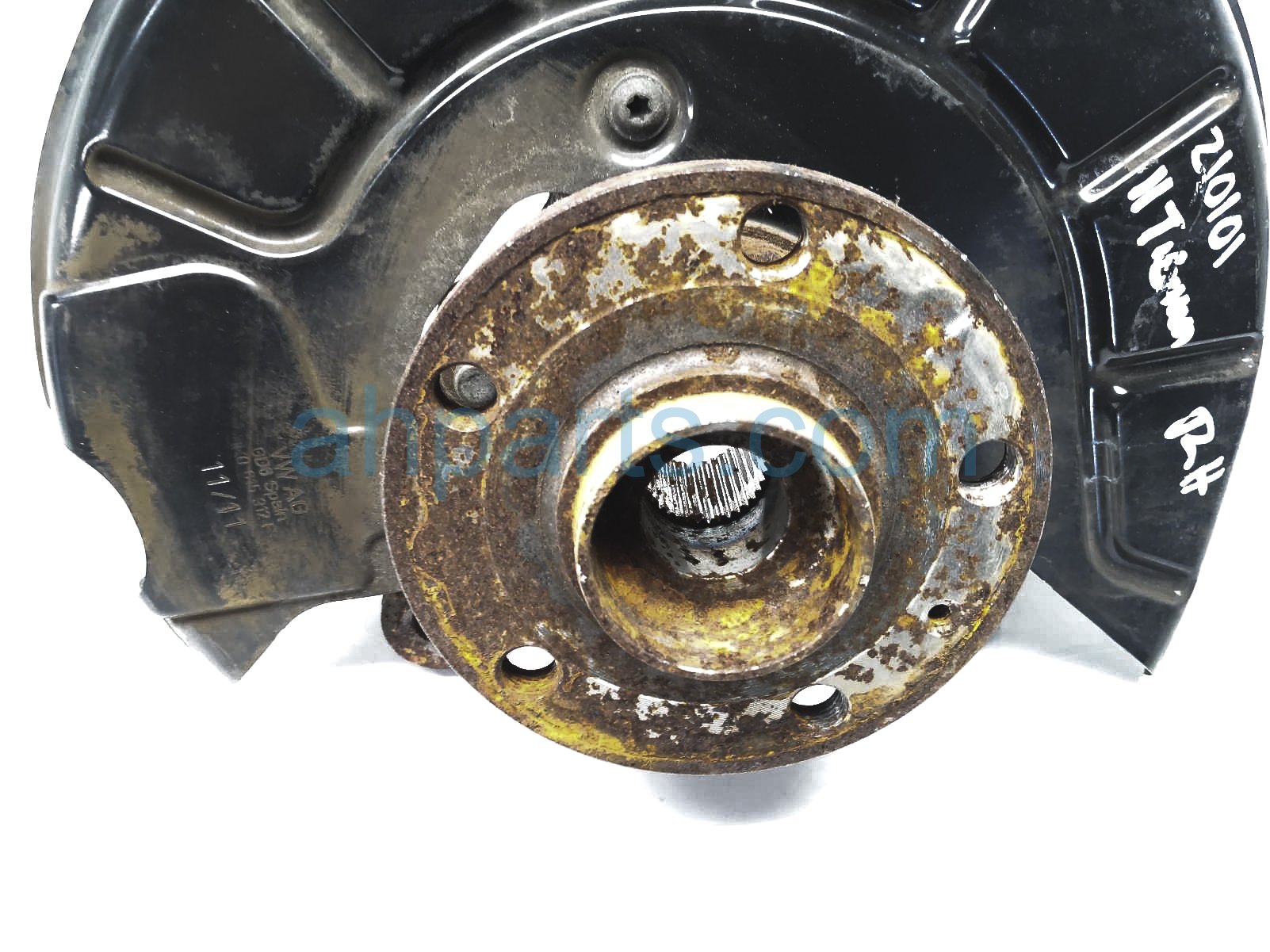 2011 Volkswagen Tiguan front passenger spindle knuckle hub is a used item with a 1 year warranty. This OEM replacement front passenger spindle knuckle hub is genuine and has part numbers 1K0-407-256-AA, 1K0407256AA, 5K0-498-621, and 5K0498621. This Volkswagen part sells for $60.