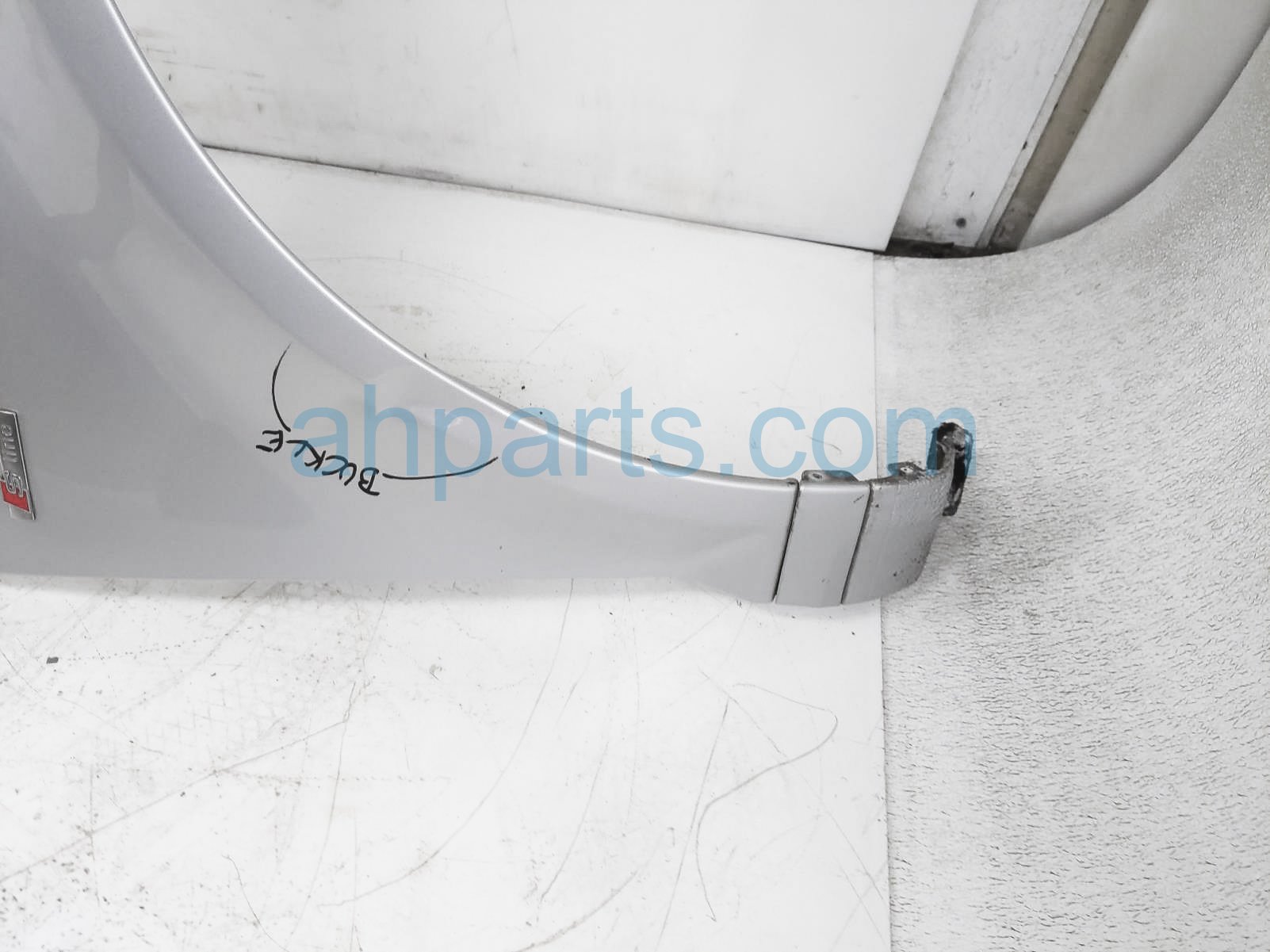 2012 Audi A3 Audi front passenger fender - silver - is a used item with a 1 year warranty. This OEM replacement front passenger fender - silver - is genuine and has part numbers 8P0-821-106-G, and 8P0821106G. This Audi part sells for $100. This item has the following note: 'Has small buckle.'