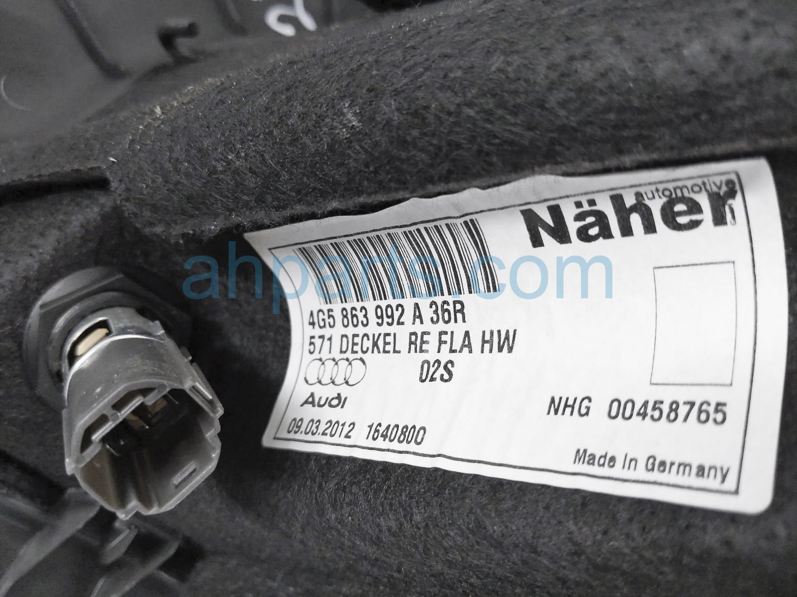 2012 Audi A6 Audi passenger cargo trunk side trim cover is a used item with a 1 year warranty. This OEM replacement passenger cargo trunk side trim cover is genuine and has part numbers 4G5-863-888-D-36R, and 4G5863888D36R. This Audi part sells for $35.