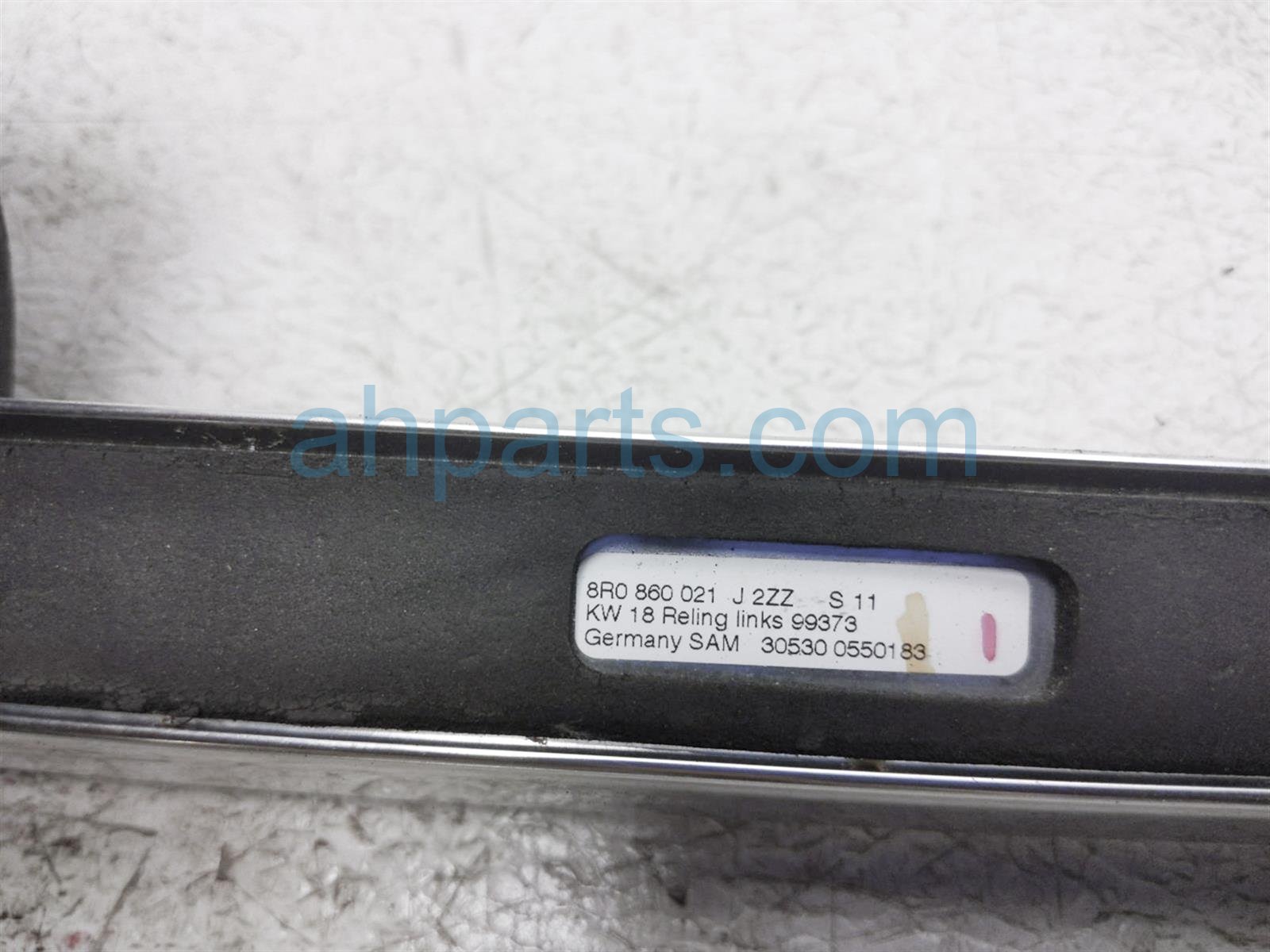 2012 Audi Q5 Audi luggage rack driver & passenger roof rails - chrome is a used item with a 1 year warranty. This OEM replacement luggage rack driver & passenger roof rails - chrome is genuine and has part numbers 8R0-860-021-J-2ZZ, 8R0860021J2ZZ, 8R0-860-022-J-2ZZ, and 8R0860022J2ZZ. This Audi part sells for $99. This item has the following note: 'Has minor scratches.'