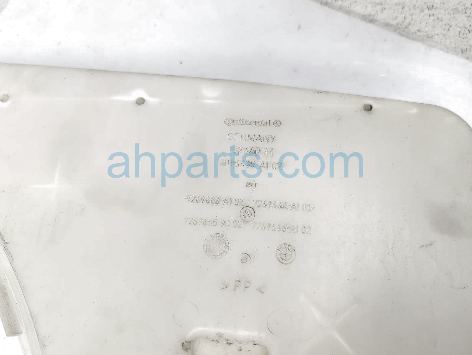 2012 BMW 740I windshield washer reservoir tank is a used item with a 1 year warranty. This OEM replacement windshield washer reservoir tank is genuine and has part numbers 61-66-7-269-667, 61667269667, 67-63-7-217-792, 67637217792, 61-66-7-237-777, 61667237777, 61-66-7-238-068, and 61667238068. This BMW part sells for $65.