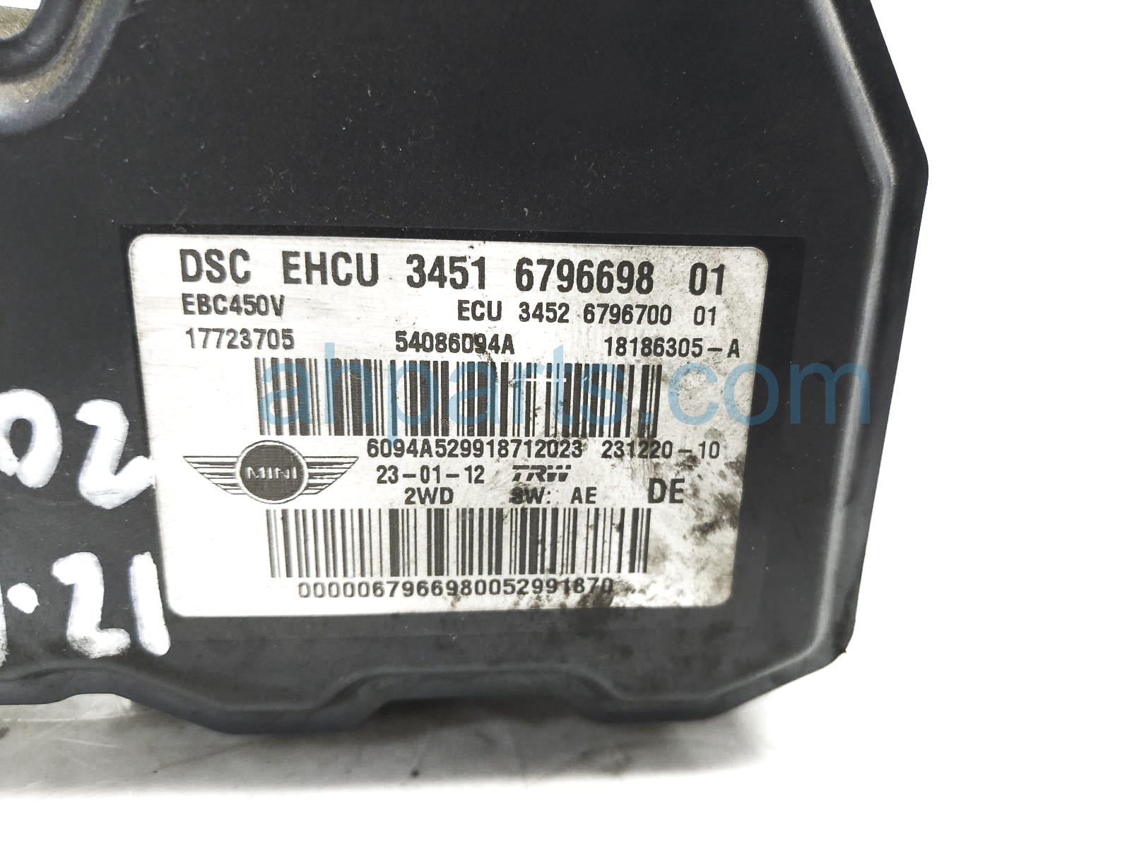 2012 BMW Mini Cooper abs/vsa / (anti lock brake) abs pump modulator is a used item with a 1 year warranty. This OEM replacement abs/vsa / (anti lock brake) abs pump modulator is genuine and has part numbers 34-51-6-796-698, and 34516796698. This BMW part sells for $50.