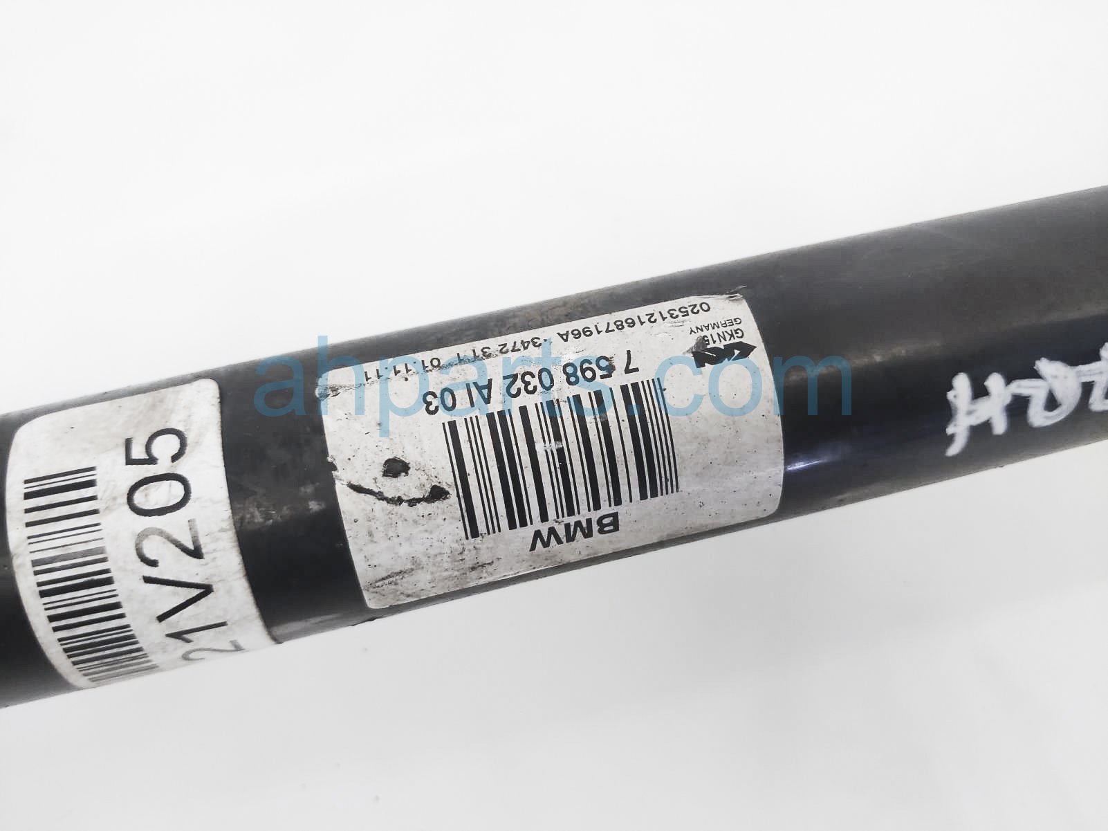 2012 BMW X3 rear passenger axle drive shaft is a used item with a 1 year warranty. This OEM replacement rear passenger axle drive shaft is genuine and has part numbers 33-20-7-598-038, and 33207598038. This BMW part sells for $60.