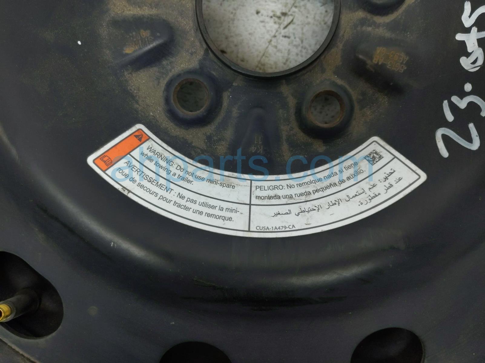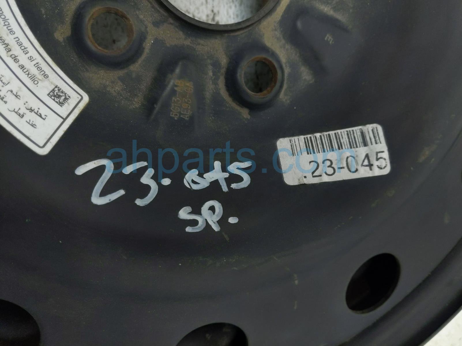 2012 Ford Flex spare steel wheel / rim only is a used item with a 1 year warranty. This OEM replacement spare steel wheel / rim only is genuine and has part numbers AE9Z-1007-E, and AE9Z1007E. This Ford part sells for $85.