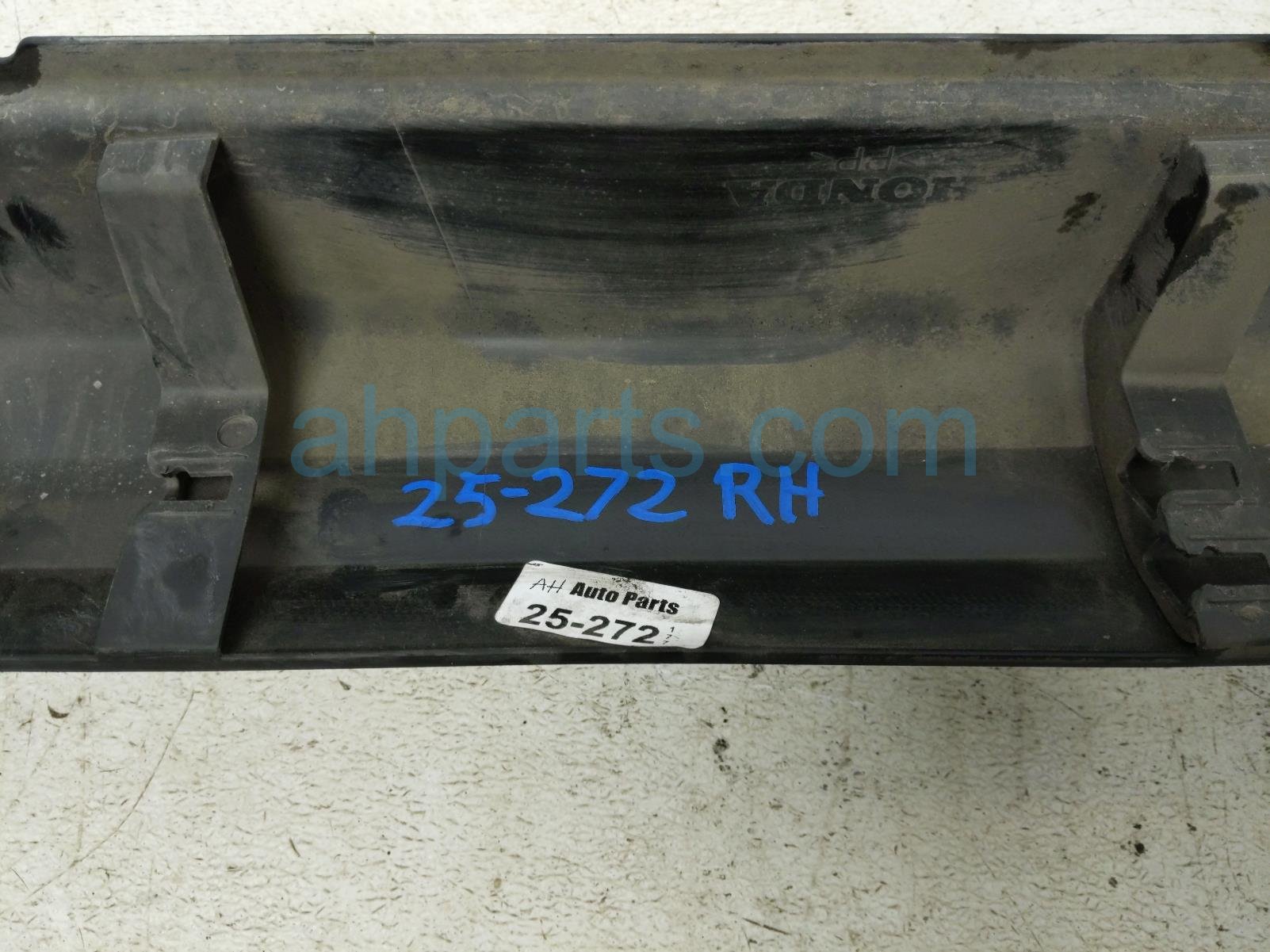 2012 Honda Pilot rocker trim passenger side skirt / molding - black is a used item with a 1 year warranty. This OEM replacement rocker trim passenger side skirt / molding - black is genuine and has part numbers 71800-SZA-A01, and 71800SZAA01. This Honda part sells for $65. This item has the following note: 'This item has some scuffs and scratches.'