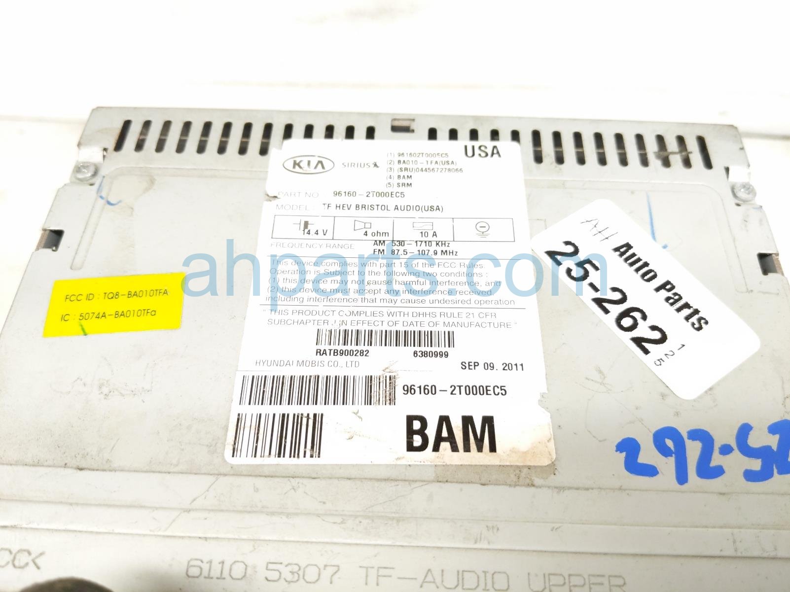 2012 Kia KIA Optima radio receiver & display screen is a used item with a 1 year warranty. This OEM replacement radio receiver & display screen is genuine and has part numbers 96160-2T000EC5, and 961602T000EC5. This Kia part sells for $95.