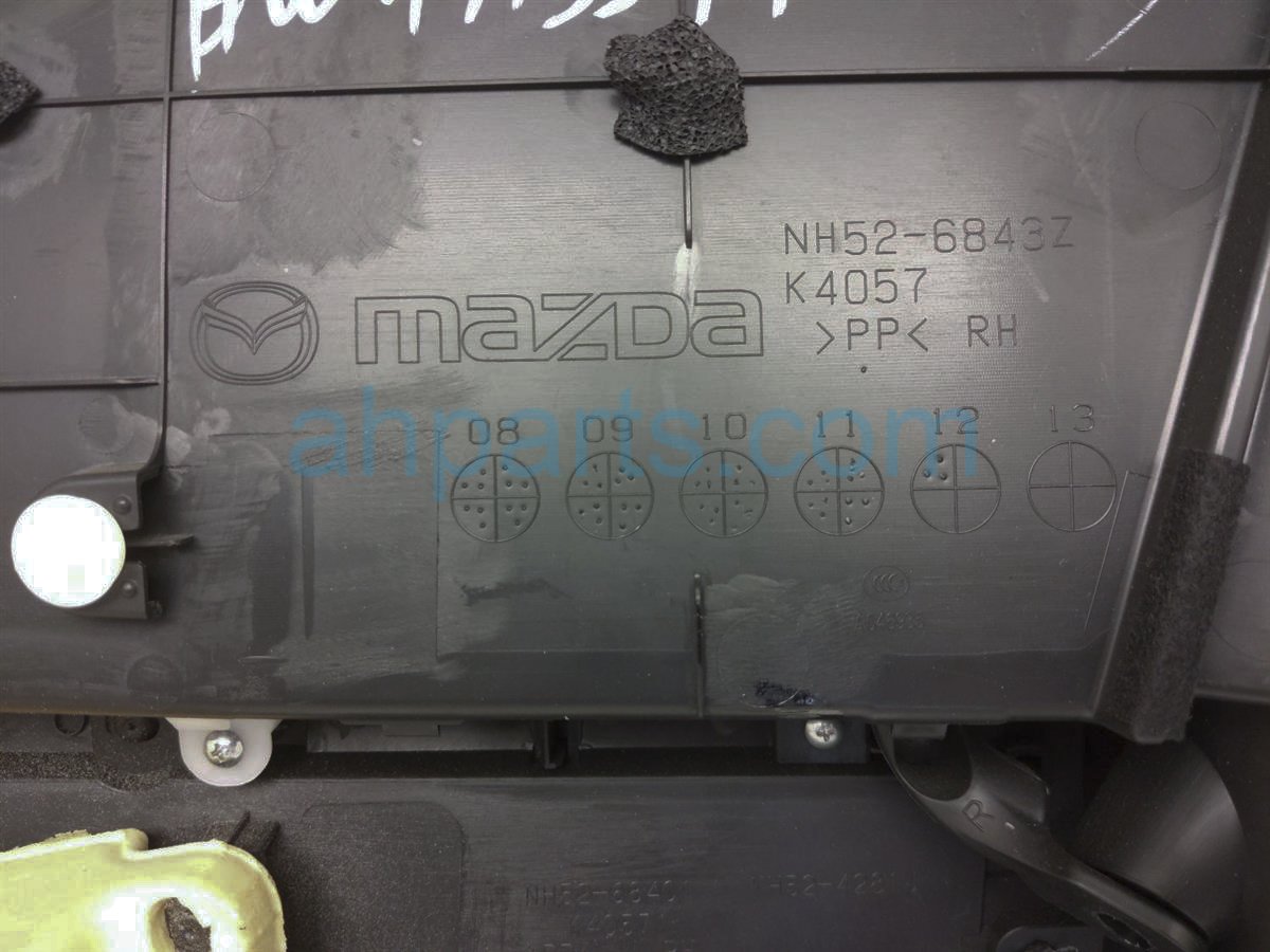 2012 Mazda Miata front trim / liner passenger interior door panel - black is a used item with a 1 year warranty. This OEM replacement front trim / liner passenger interior door panel - black is genuine and has part numbers NH52-68-4L1-02, and NH52684L102. This Mazda part sells for $149.