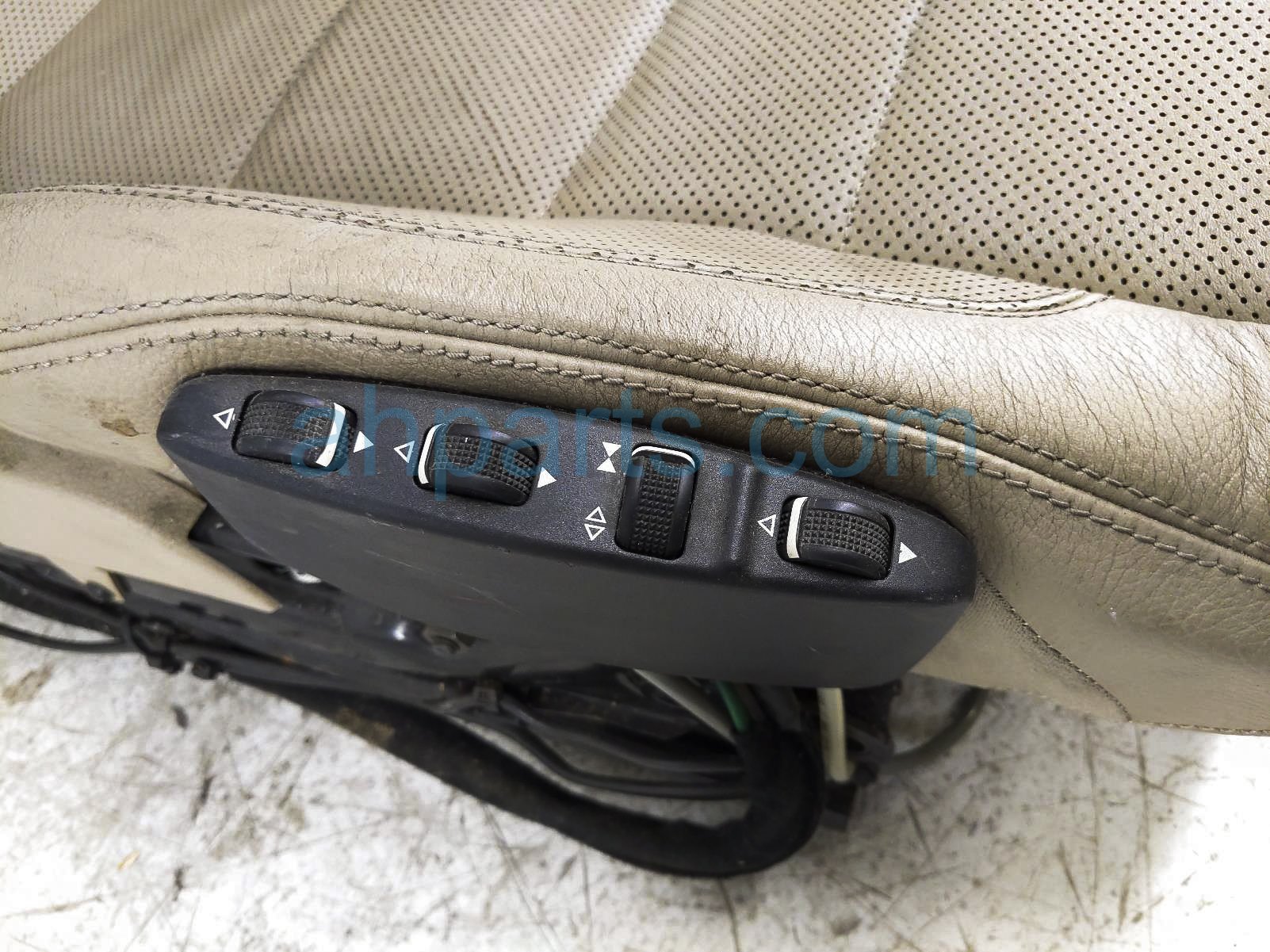 2012 Mercedes E350 front driver seat assy - tan is a used item with a 1 year warranty. This OEM replacement front driver seat assy - tan is genuine and has part numbers 207-910-00-22, 2079100022, 207-910-05-34, 2079100534, 207-910-21-36, and 2079102136. This Mercedes part sells for $195. This item has the following note: 'This item is a little dirty and has deep scratches on the plastic panels with the chrome molding peeling on the pull handle - grade b.'