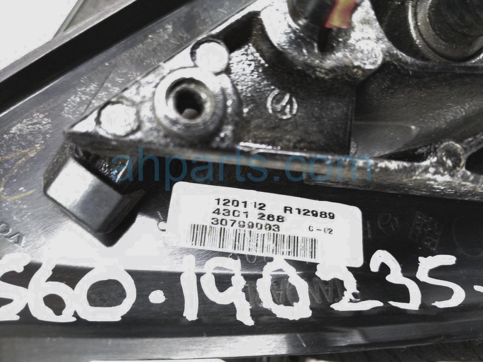 2012 Volvo S60 rear passenger side view mirror - red is a used item with a 1 year warranty. This OEM replacement rear passenger side view mirror - red is genuine and has part numbers 31402636, 31298051, and 39804864. This Volvo part sells for $150. This item has the following note: 'This item has some scuffs and scratches on the paint and a broken piece on the lens - grade c.'