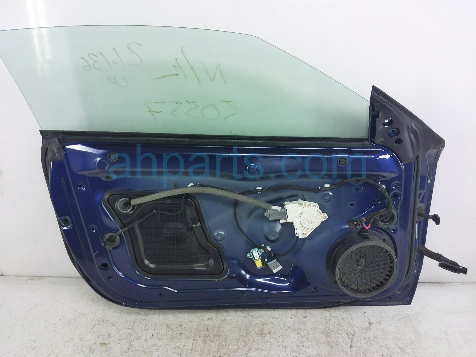 2013 Audi A5 Audi front driver door - blue - no mirror/trim is a used item with a 1 year warranty. This OEM replacement front driver door - blue - no mirror/trim is genuine and has part numbers 8F0-831-051-A, and 8F0831051A. This Audi part sells for $350. This item has the following note: 'Has minor scratches.'