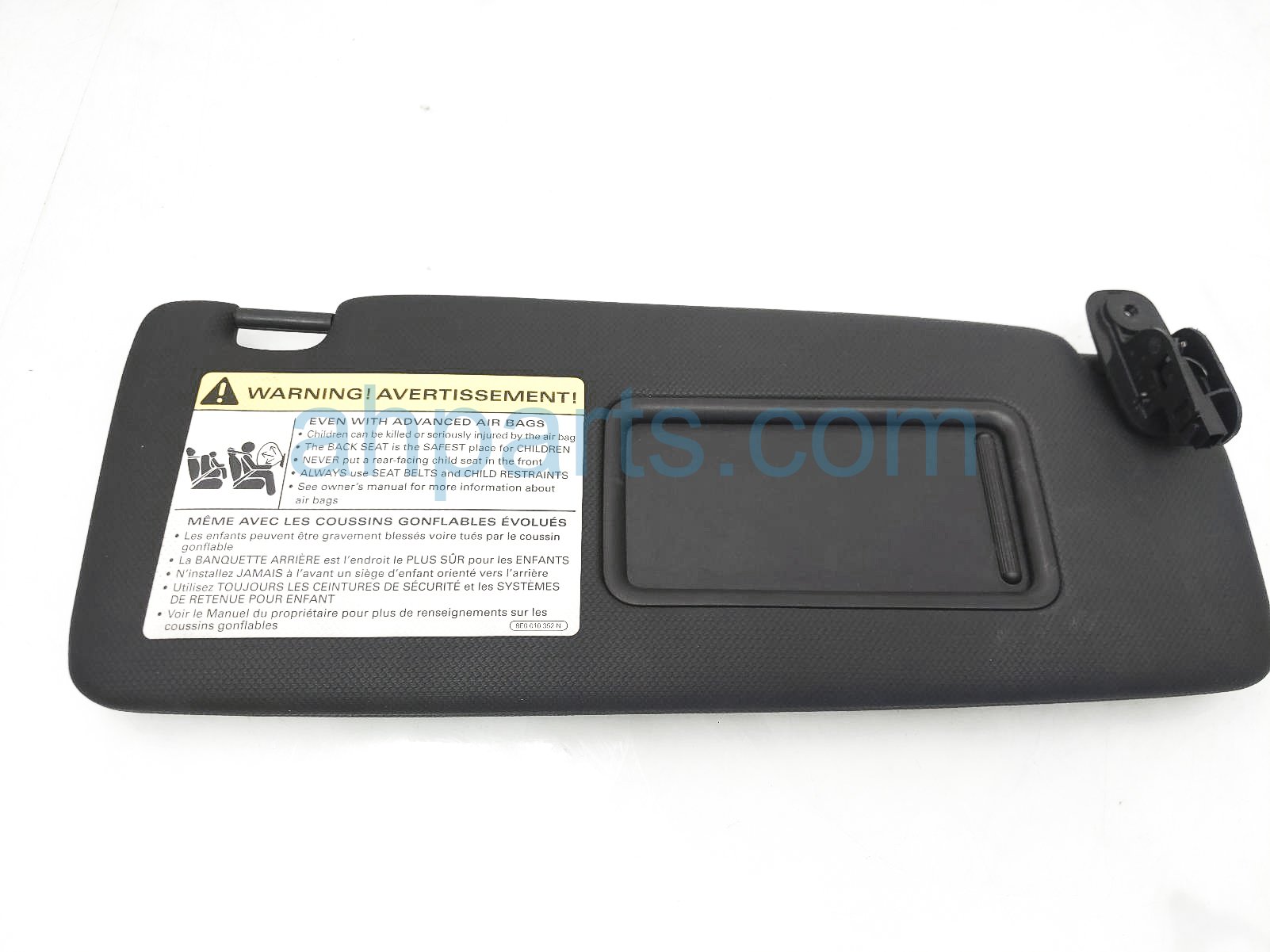 2013 Audi TT Audi passenger sun visor - black is a used item with a 1 year warranty. This OEM replacement passenger sun visor - black is genuine and has part numbers 8J8-857-552-J-7C0, and 8J8857552J7C0. This Audi part sells for $45.
