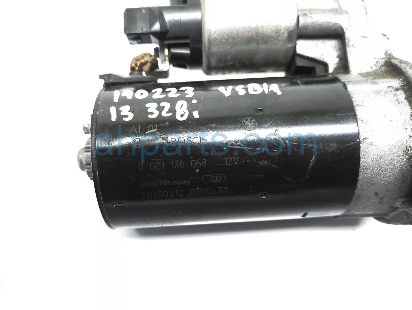 2013 BMW 328I starter motor is a used item with a 1 year warranty. This OEM replacement starter motor is genuine and has part numbers 12-41-8-612-576, and 12418612576. This BMW part sells for $50.