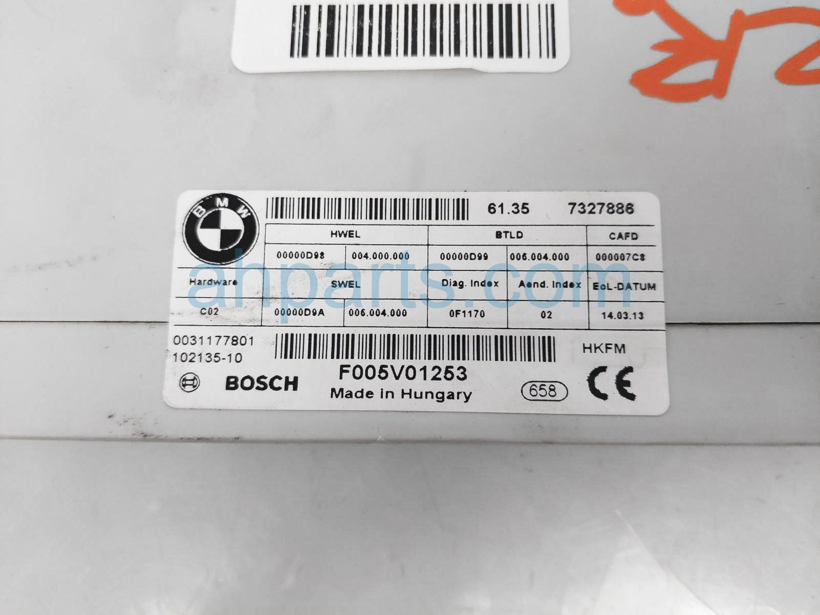 2013 BMW 528I tailgate lift control module unit is a used item with a 1 year warranty. This OEM replacement tailgate lift control module unit is genuine and has part numbers 61-35-7-327-886, and 61357327886. This BMW part sells for $89.