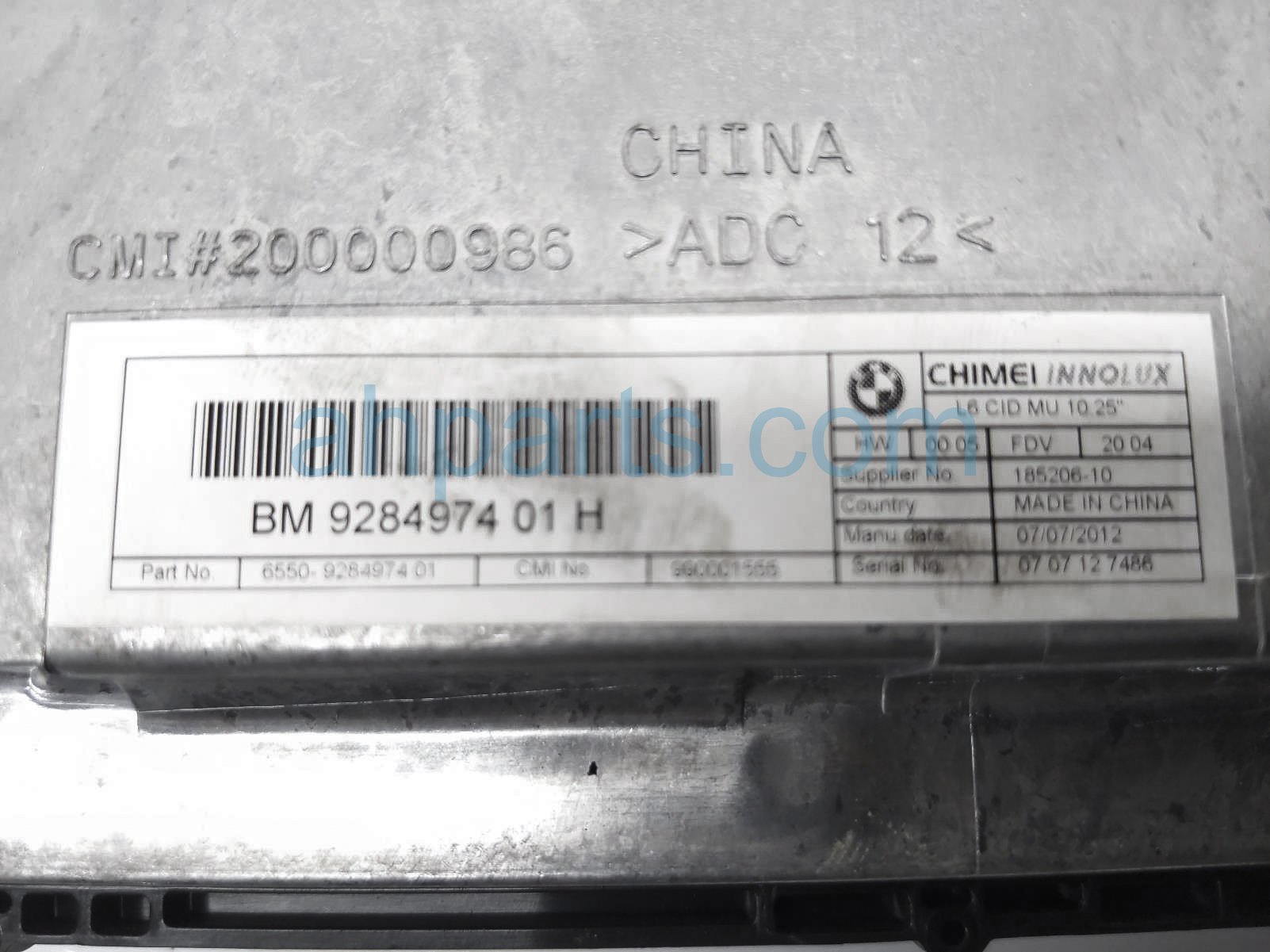 2013 BMW 535I upper display screen - is a used item with a 1 year warranty. This OEM replacement upper display screen - is genuine and has part numbers 65-50-9-284-974, and 65509284974. This BMW part sells for $60. This item has the following note: 'The screen has some scratches at the the bottom of the screen.'