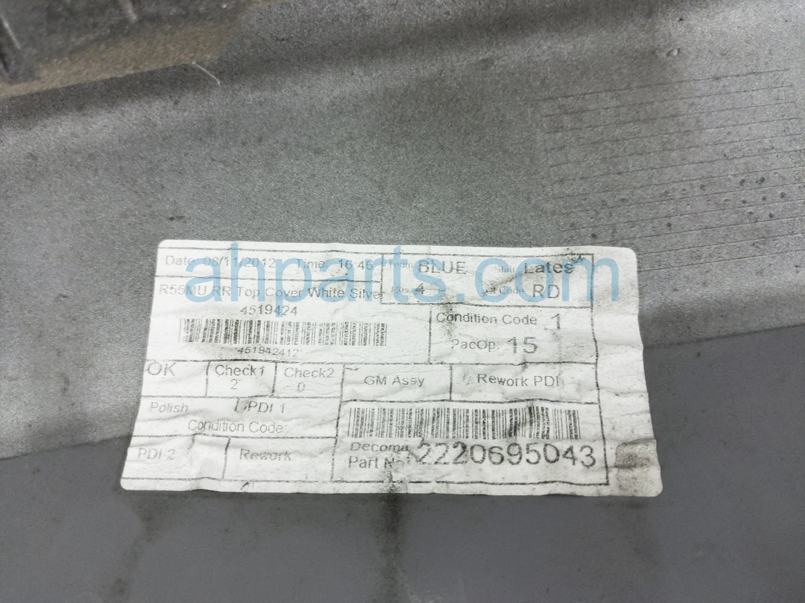 2013 BMW Clubman Minicooper rear bumper cover - silver - ** is a used item with a 1 year warranty. This OEM replacement rear bumper cover - silver - ** is genuine and has part numbers 51-12-2-156-718, 51122156718, 51-12-2-156-722, 51122156722, 51-12-2-156-727, and 51122156727. This BMW part sells for $199. This item has the following note: '**parking sensors sold seperately and has a couple gouges and scratches has a few small dings .has deep scratches.'