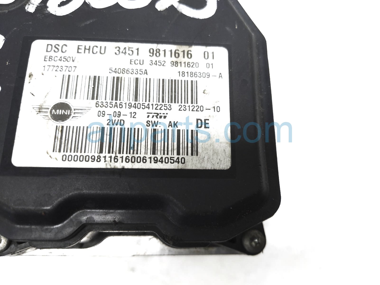 2013 BMW Mini Cooper abs/vsa / (anti lock brake) abs pump modulator is a used item with a 1 year warranty. This OEM replacement abs/vsa / (anti lock brake) abs pump modulator is genuine and has part numbers 34-51-9-811-616, and 34519811616. This BMW part sells for $50.