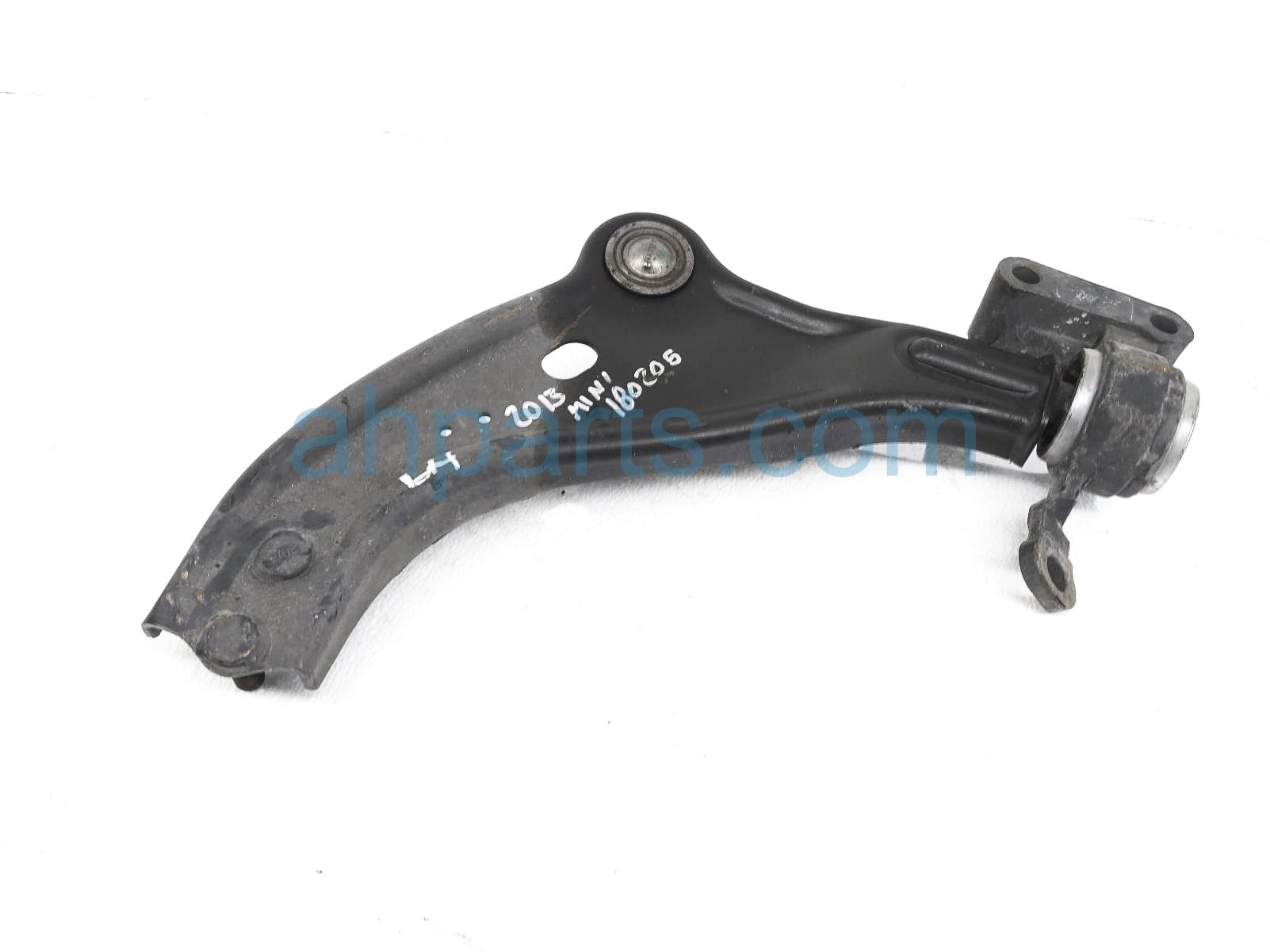 2013 BMW Mini Cooper front driver lower control arm is a used item with a 1 year warranty. This OEM replacement front driver lower control arm is genuine and has part numbers 31-12-6-772-301, and 31126772301. This BMW part sells for $75.