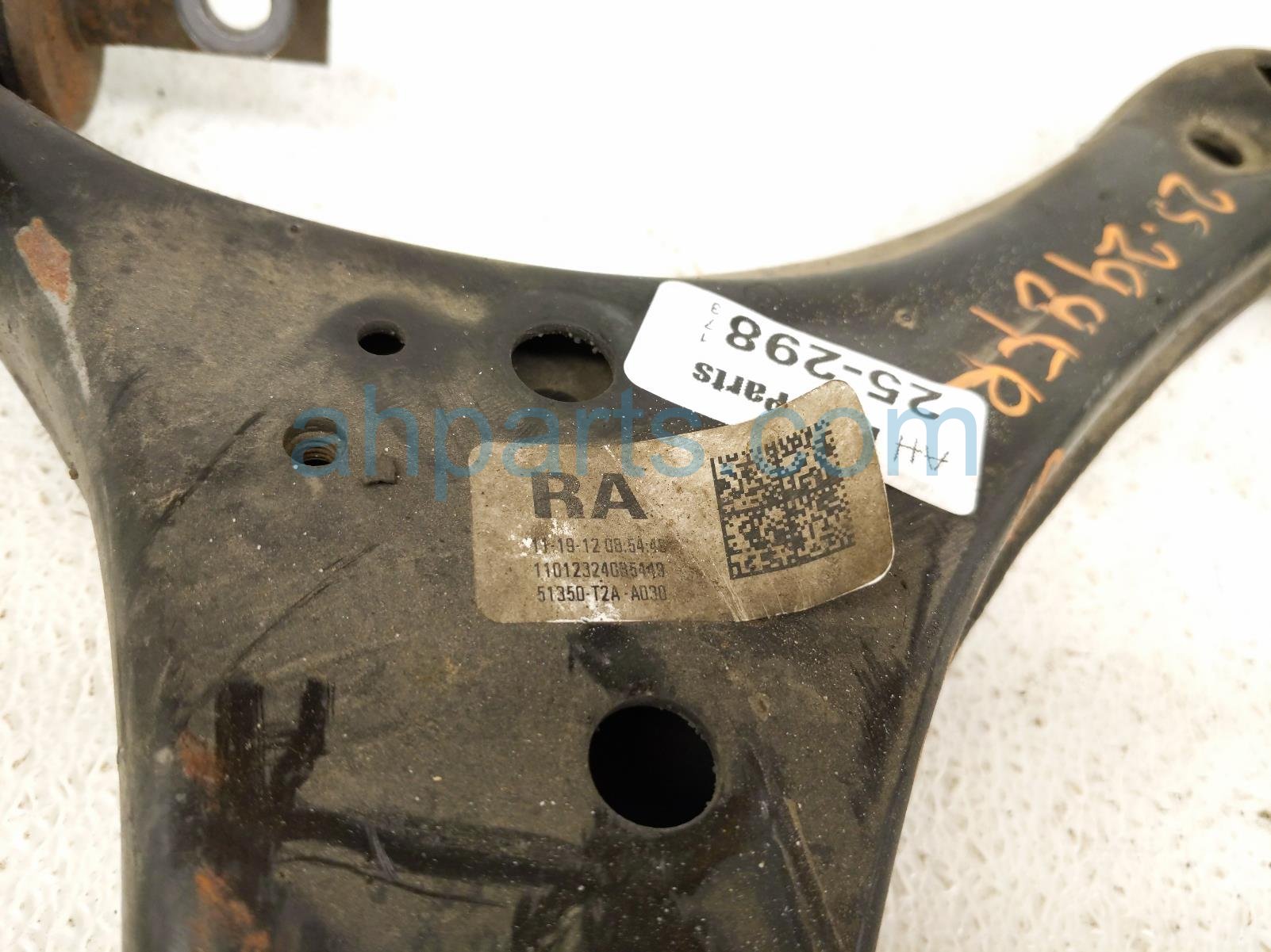 2013 Honda Accord front passenger lower control arm is a used item with a 1 year warranty. This OEM replacement front passenger lower control arm is genuine and has part numbers 51350-T2A-A03, and 51350T2AA03. This Honda part sells for $99.