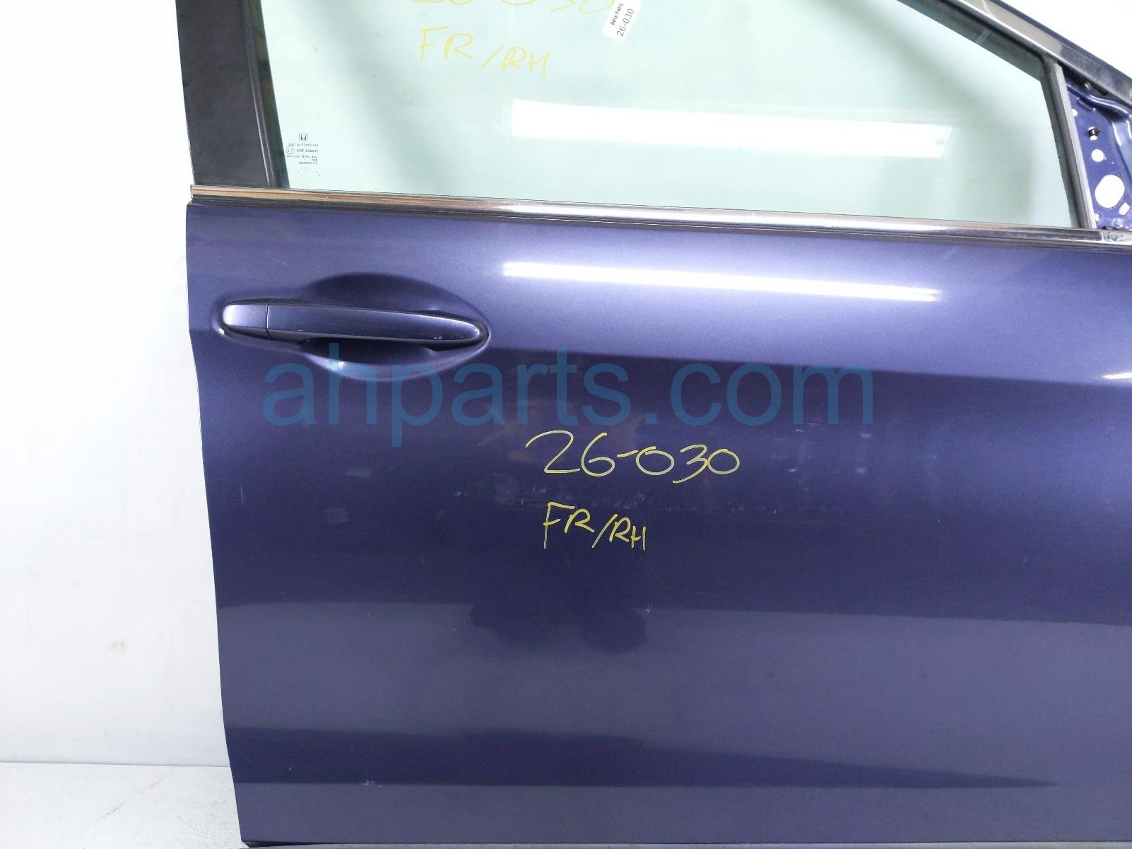 2013 Honda CR-V front passenger door - blue - no mirror/trim is a used item with a 1 year warranty. This OEM replacement front passenger door - blue - no mirror/trim is genuine and has part numbers 73300-T0G-A00, 73300T0GA00, 72211-T0A-A01, 72211T0AA01, 67010-T0J-X90ZZ, and 67010T0JX90ZZ. This Honda part is for sale (please call for pricing). This item has the following note: 'This item has some minor scratches.'