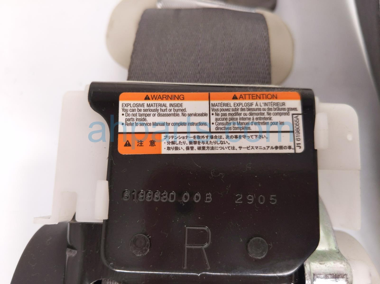 2013 Honda CR-V front passenger seat belt - grey is a used item with a 1 year warranty. This OEM replacement front passenger seat belt - grey is genuine and has part numbers 04814-T0G-A00ZA, and 04814T0GA00ZA. This Honda part is for sale (please call for pricing).
