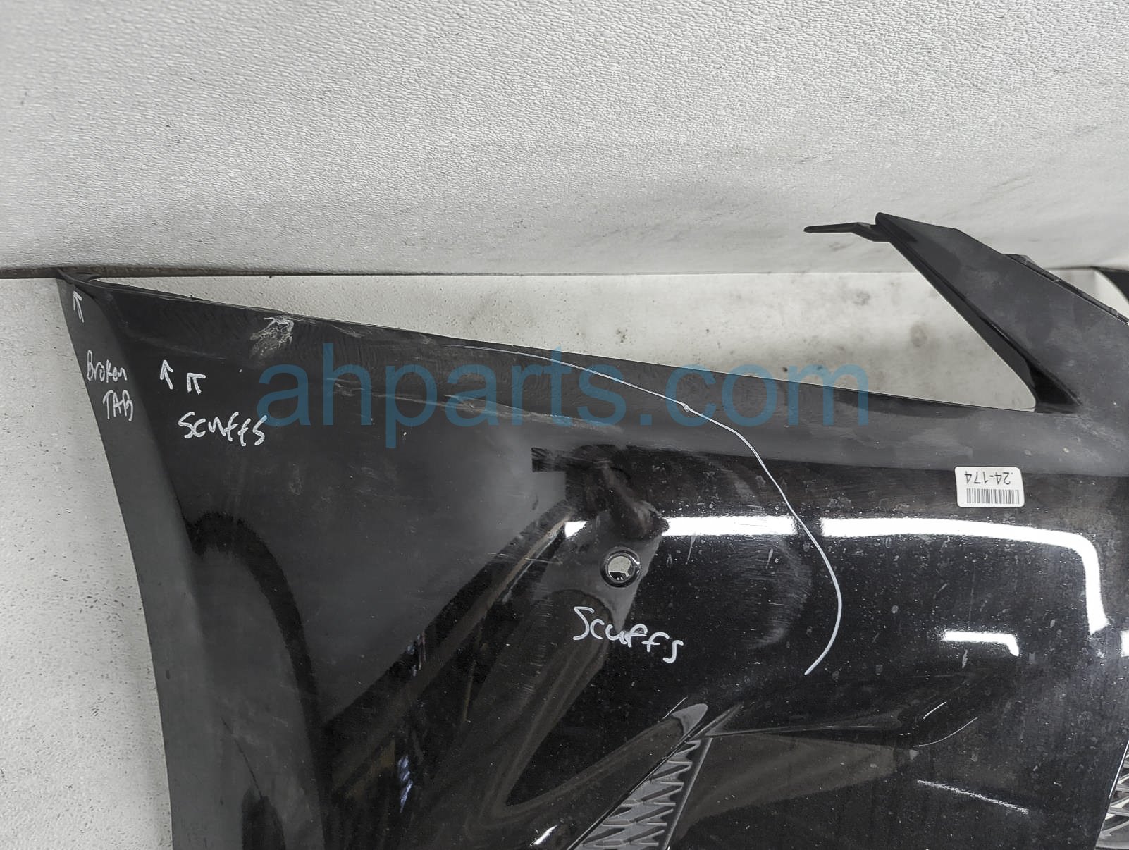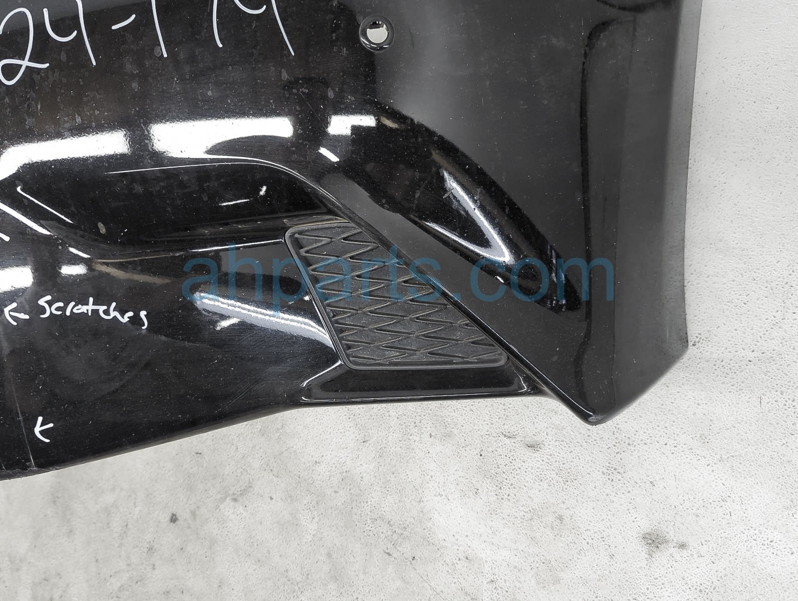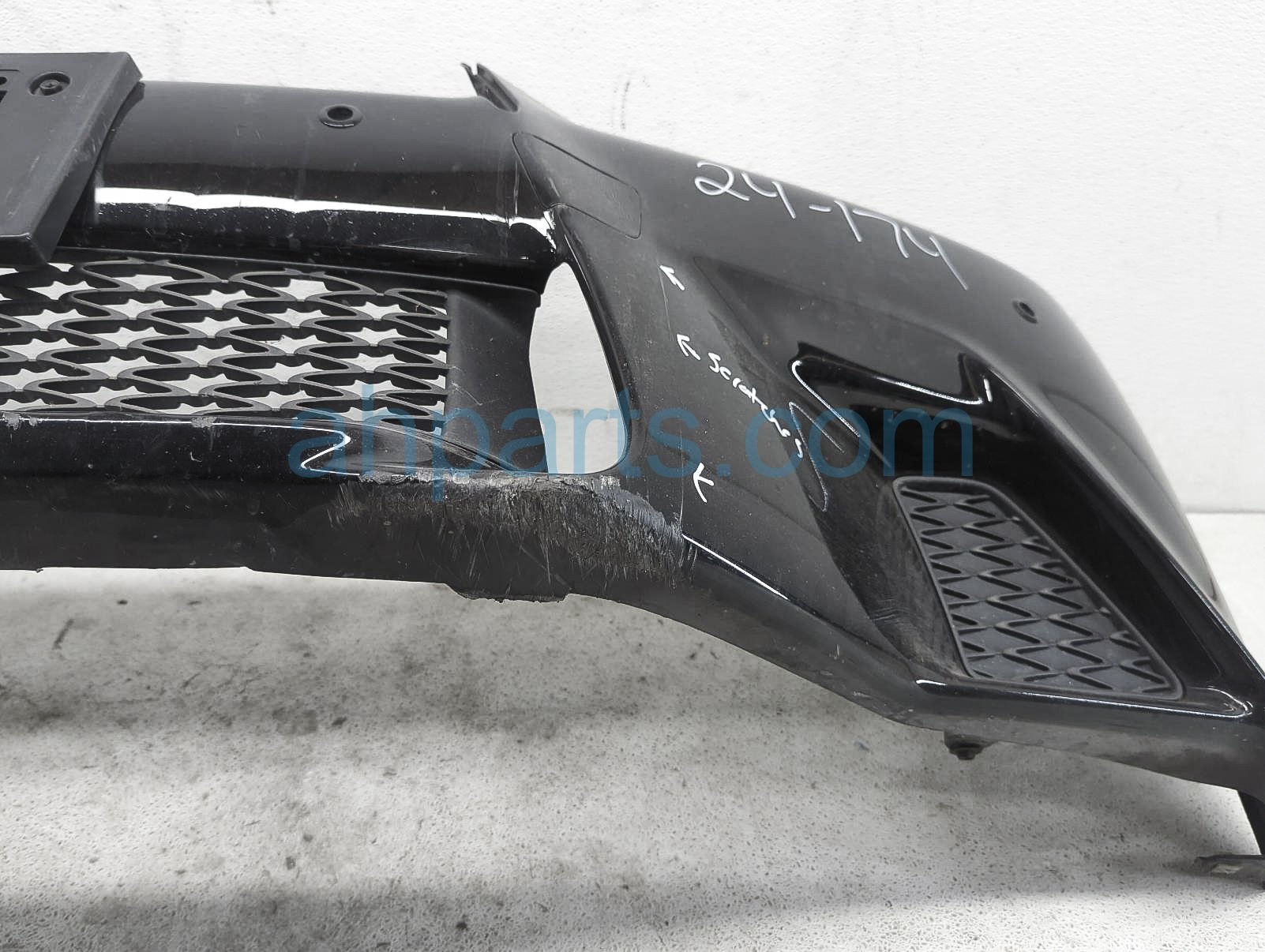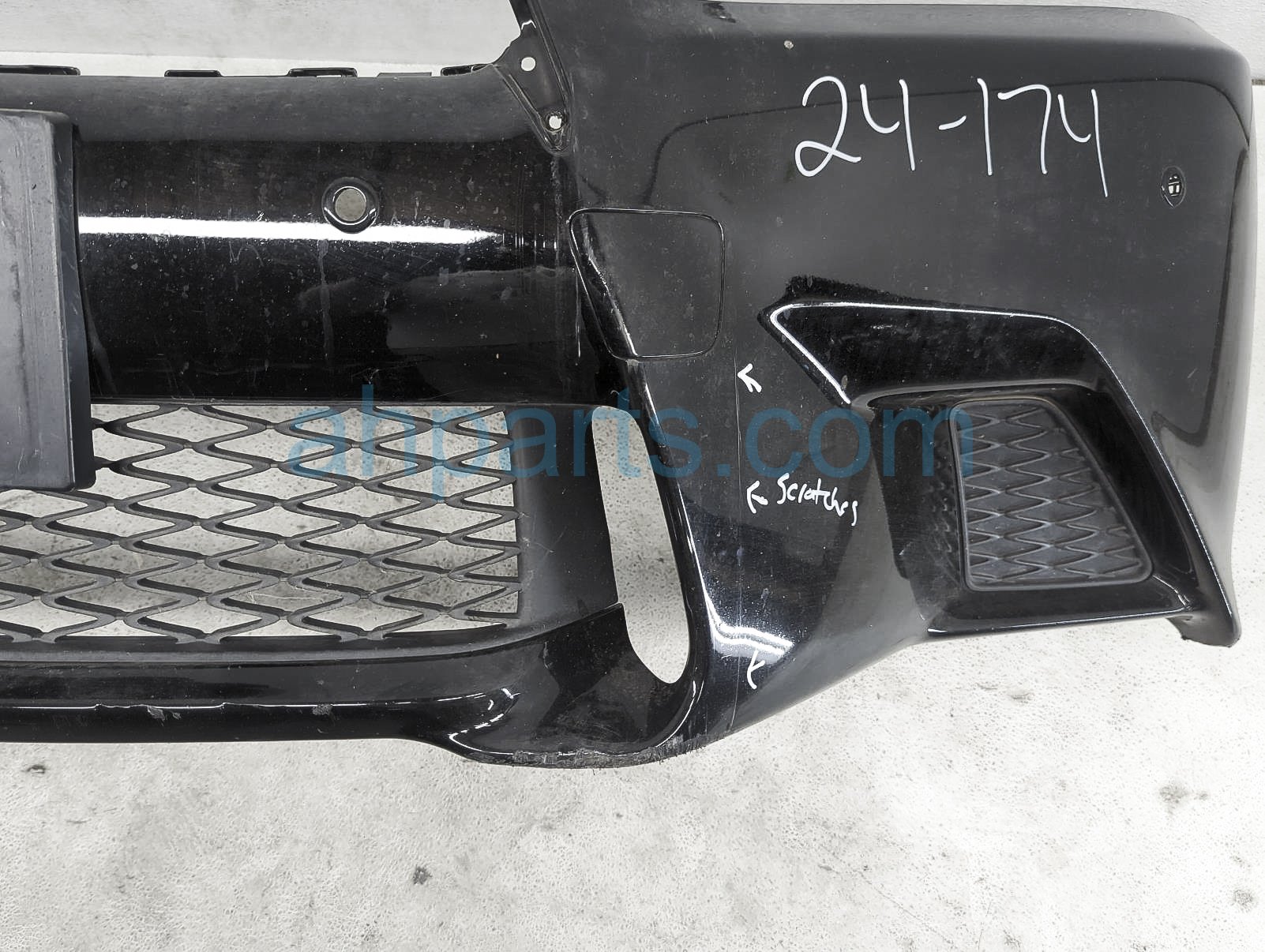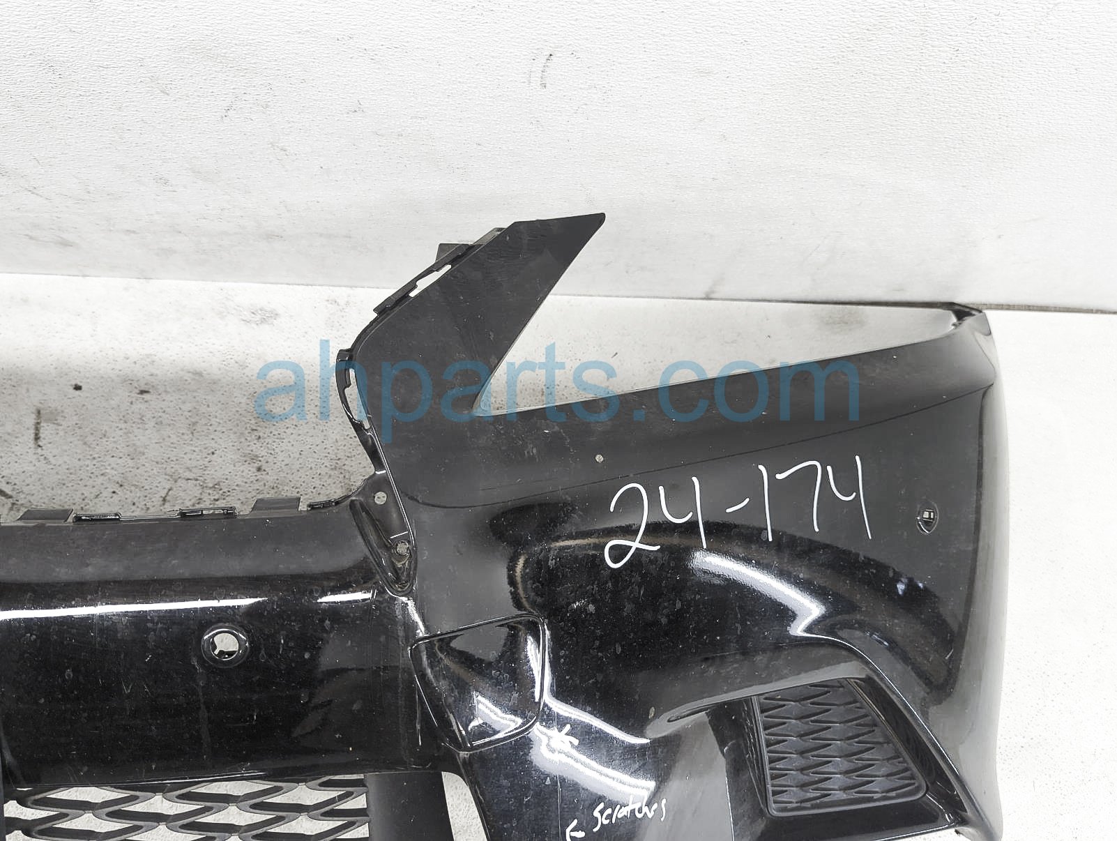This item has the following note: 'F-sport - parking sensors sold seperately this item has one broken tab, a few cracks at the bottom, scrapes at the bottom and scuffs on the paint - grade c.'