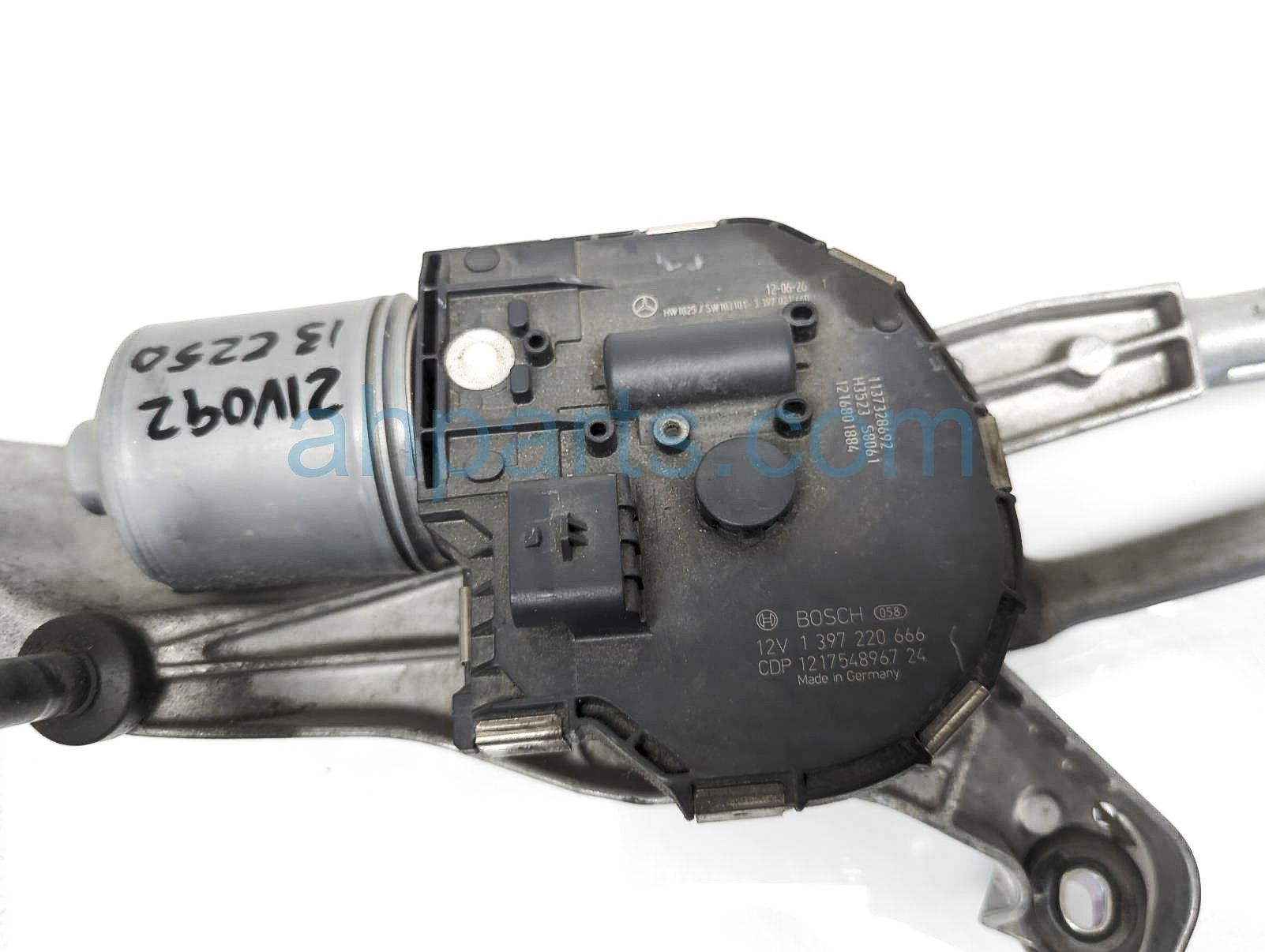 2013 Mercedes C250 front windshield arms wiper motor w/transmission arm is a used item with a 1 year warranty. This OEM replacement front windshield arms wiper motor w/transmission arm is genuine and has part numbers 204-820-10-40-64, and 204820104064. This Mercedes part sells for $64.