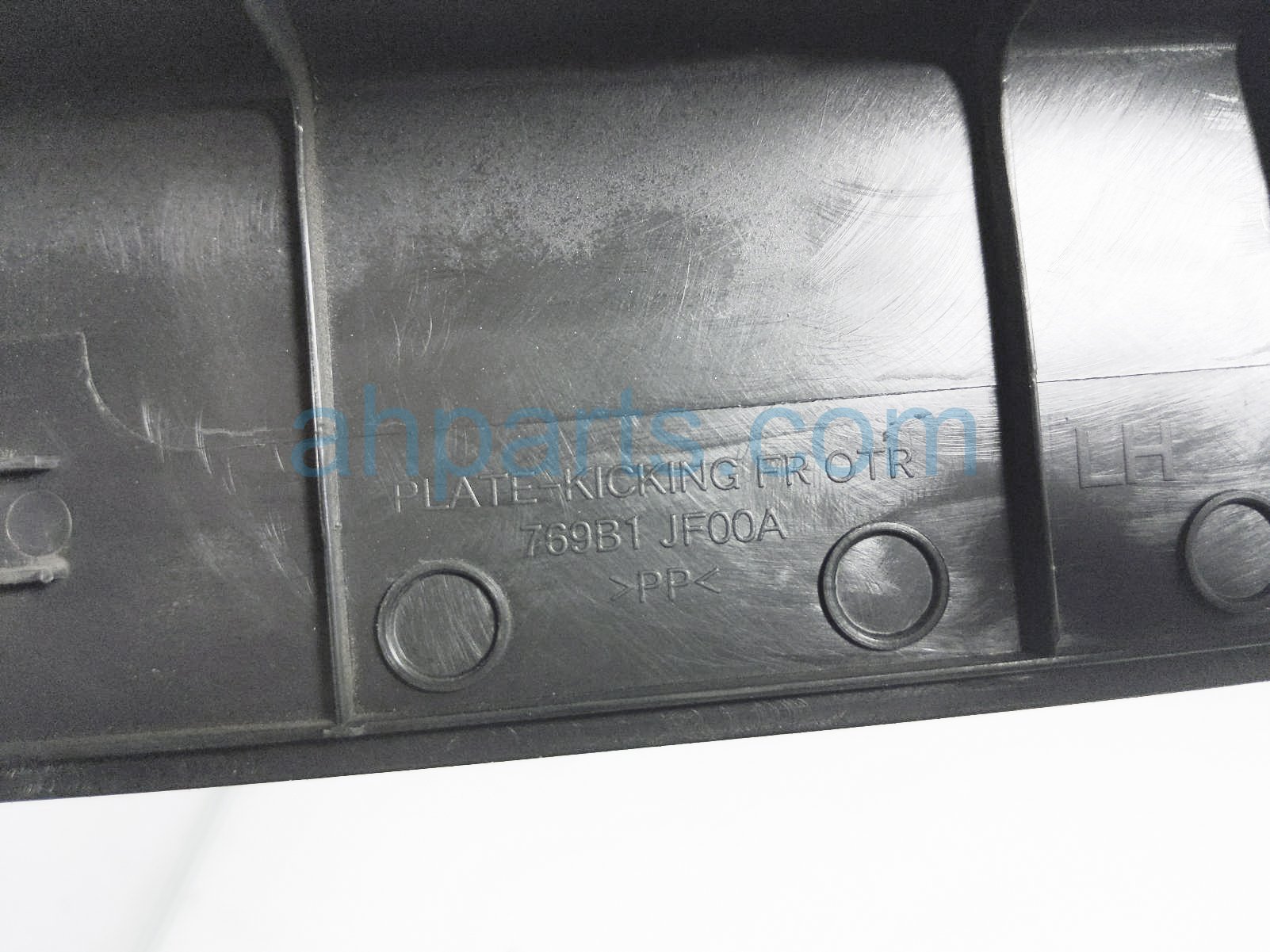 2013 Nissan GT-R front outer driver scuff plate - black is a used item with a 1 year warranty. This OEM replacement front outer driver scuff plate - black is genuine and has part numbers 769B1-JF00A, and 769B1JF00A. This Nissan part sells for $99. This item has the following note: 'Has minor scratches.'