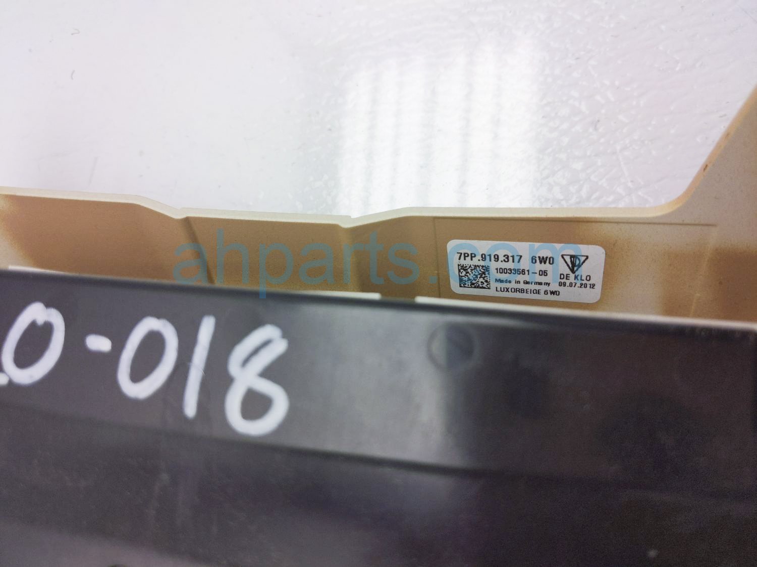 2013 Porsche Cayenne map light assy -tan is a used item with a 1 year warranty. This OEM replacement map light assy -tan is genuine and has part numbers 7PP-868-404-PD, and 7PP868404PD. This Porsche part sells for $45.