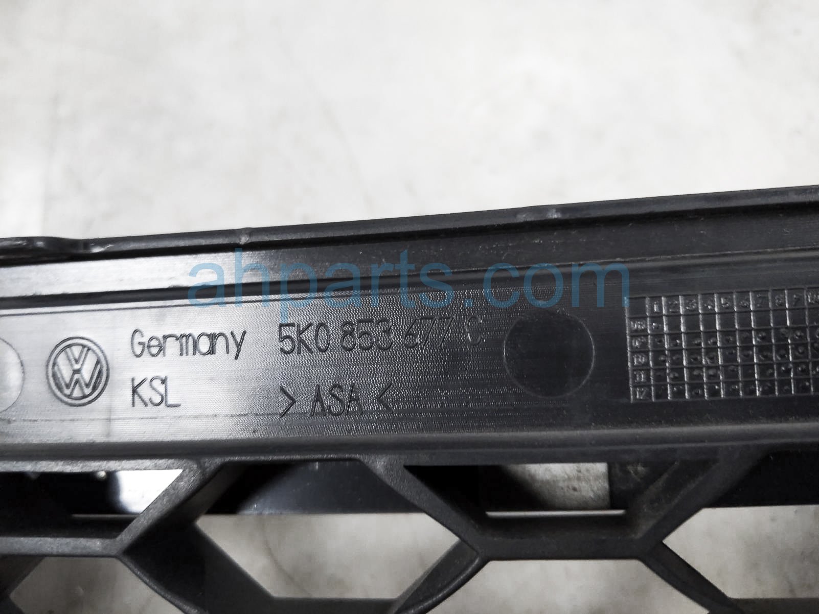 2013 Volkswagen Golf GTI lower grille w/ license plate mount is a used item with a 1 year warranty. This OEM replacement lower grille w/ license plate mount is genuine and has part numbers 5K0-853-677-C-9B9, and 5K0853677C9B9. This Volkswagen part sells for $75. This item has the following note: 'This item has 1 chipped area on tab - grade b.'