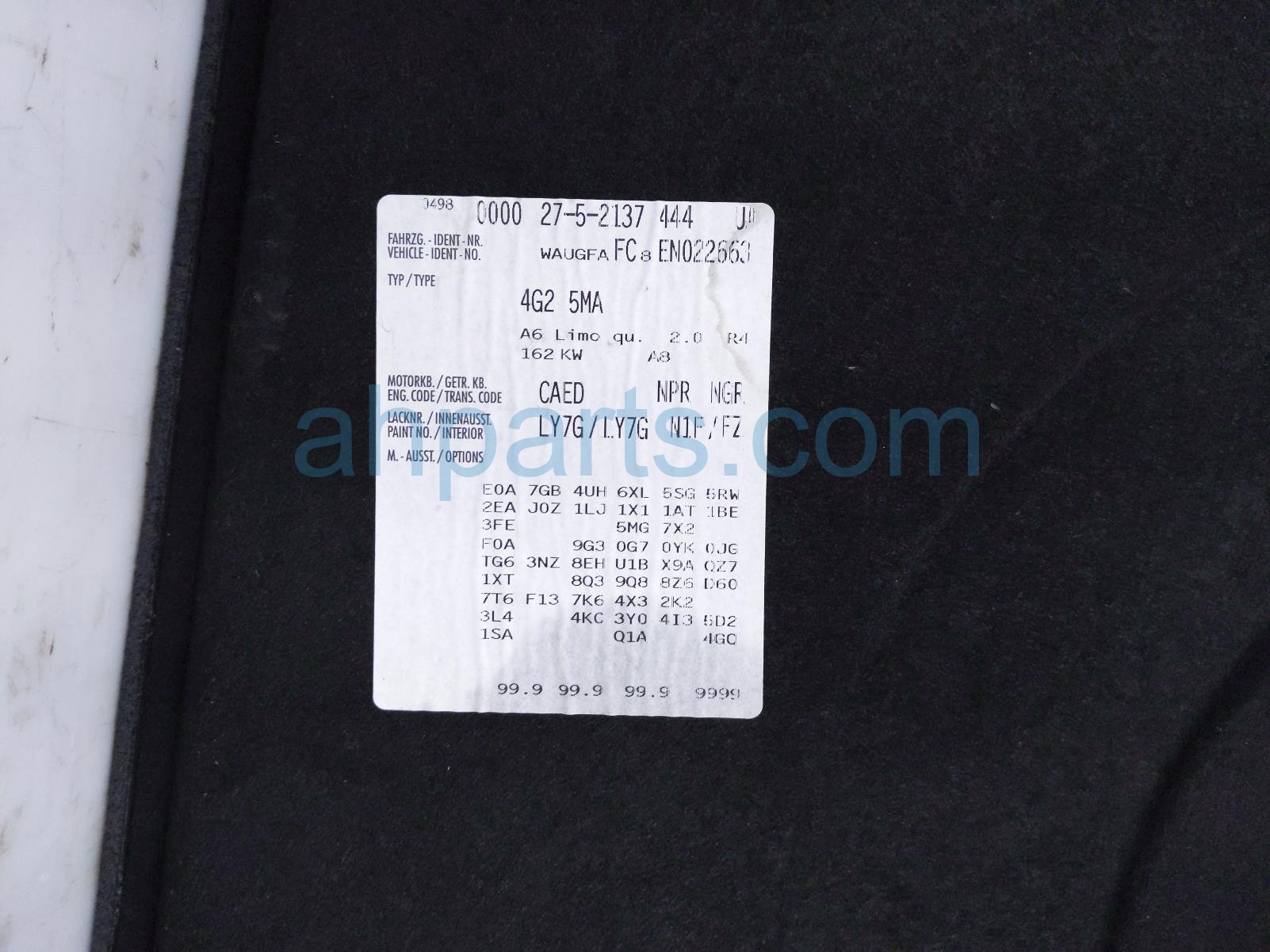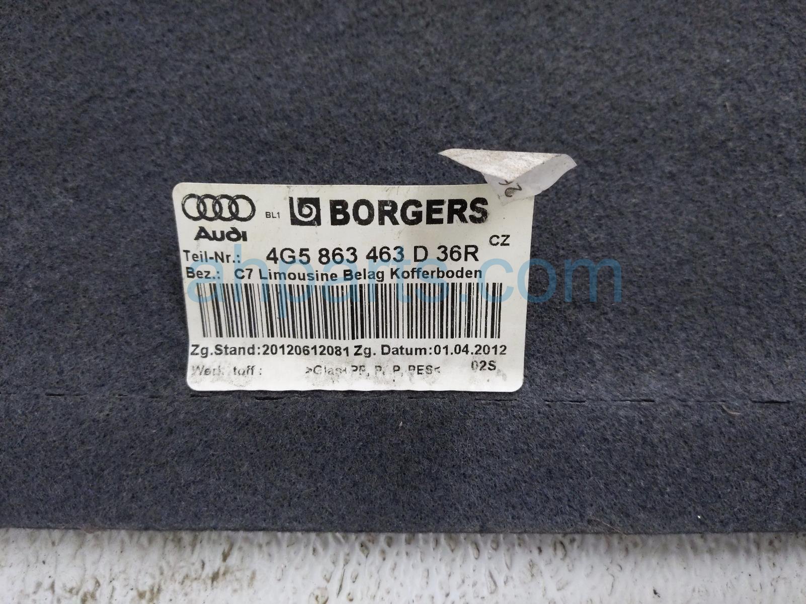 2014 Audi A6 Audi cargo floor lid - black is a used item with a 1 year warranty. This OEM replacement cargo floor lid - black is genuine and has part numbers 4G5-863-463-D-36R, and 4G5863463D36R. This Audi part is for sale (please call for pricing).
