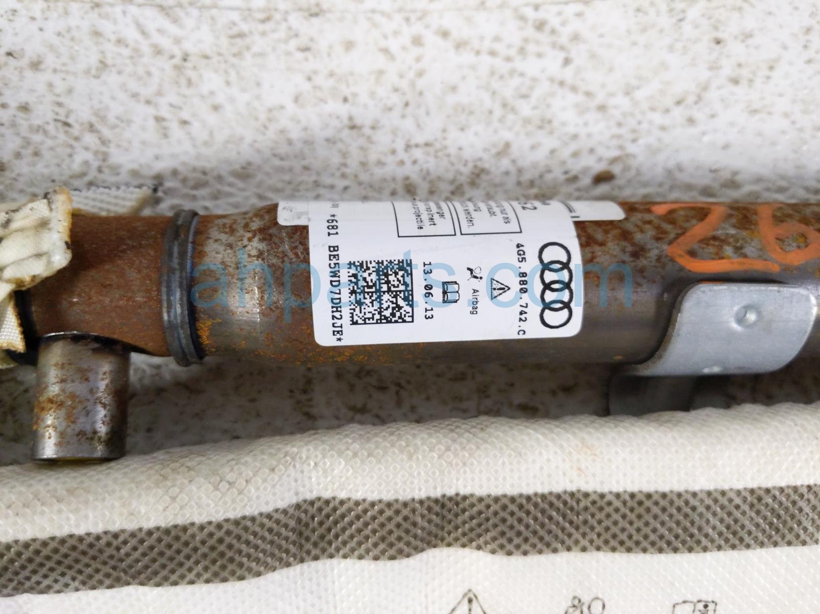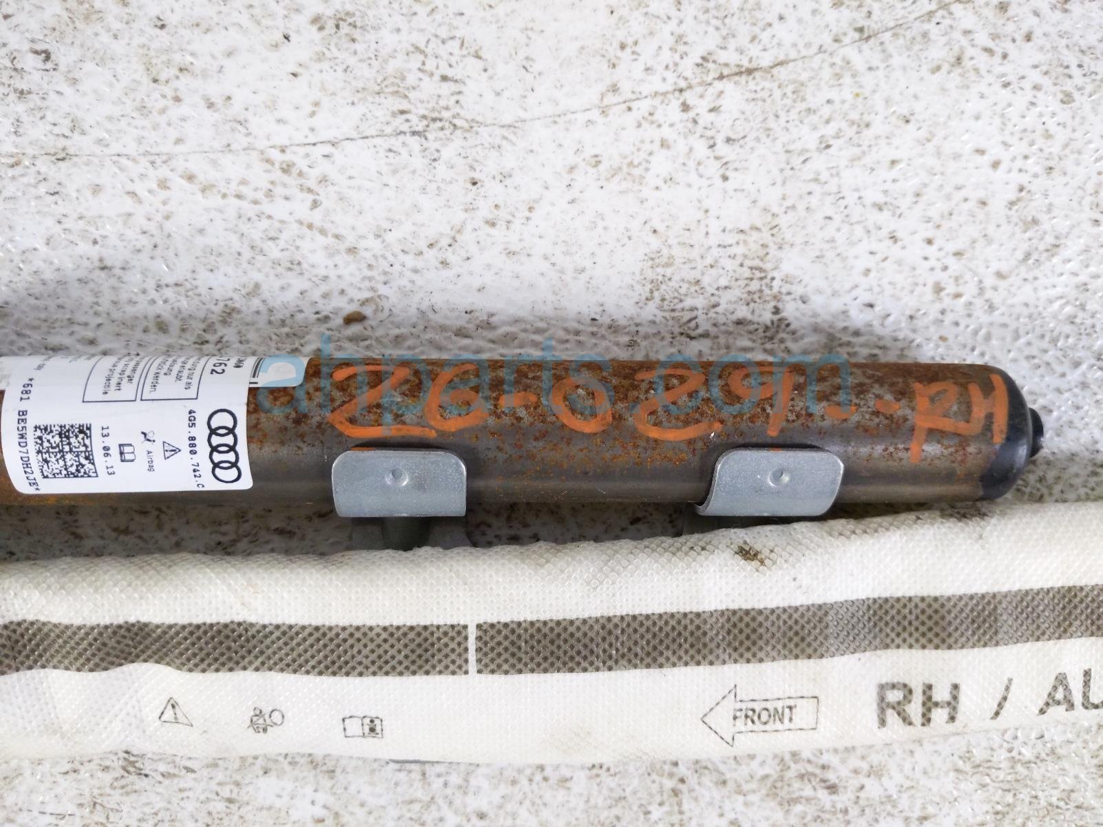 2014 Audi A6 Audi passenger roof curtain airbag is a used item with a 1 year warranty. This OEM replacement passenger roof curtain airbag is genuine and has part numbers 4G5-880-742-C, 4G5880742C, 4G5-880-742-F, and 4G5880742F. This Audi part is for sale (please call for pricing).