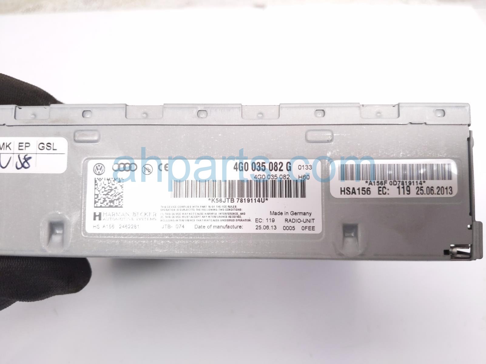 2014 Audi A6 Audi radio tuner module - rear driver is a used item with a 1 year warranty. This OEM replacement radio tuner module - rear driver is genuine and has part numbers 4G0-035-082-G, and 4G0035082G. This Audi part is for sale (please call for pricing).