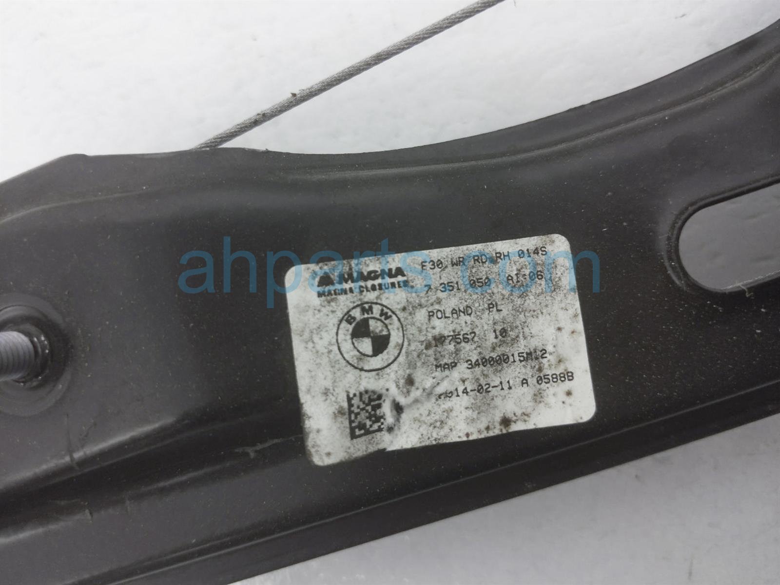 2014 BMW 328I rear passenger window regulator & motor is a used item with a 1 year warranty. This OEM replacement rear passenger window regulator & motor is genuine and has part numbers 51-35-7-281-888, 51357281888, 67-62-7-341-564, and 67627341564. This BMW part sells for $50.