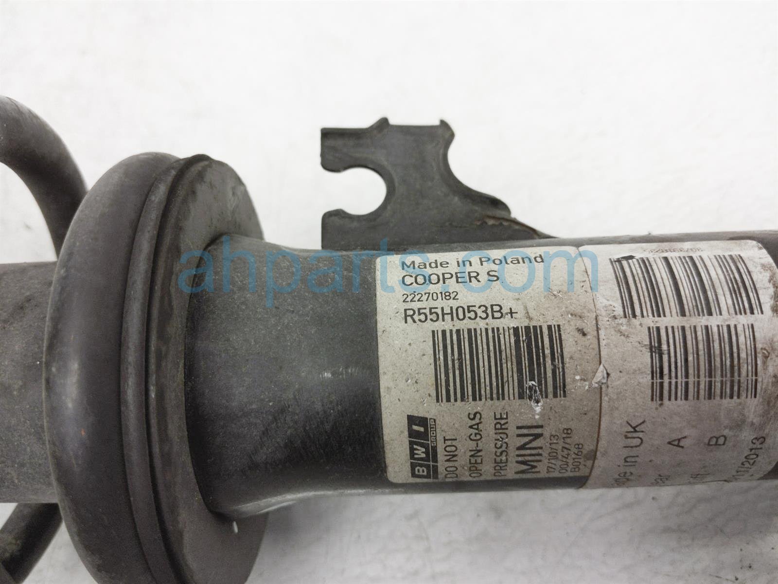 2014 BMW Clubman Minicooper rear passenger strut + spring is a used item with a 1 year warranty. This OEM replacement rear passenger strut + spring is genuine and has part numbers 33-52-6-853-967, 33526853967, 33-53-6-781-176, and 33536781176. This BMW part sells for $60.