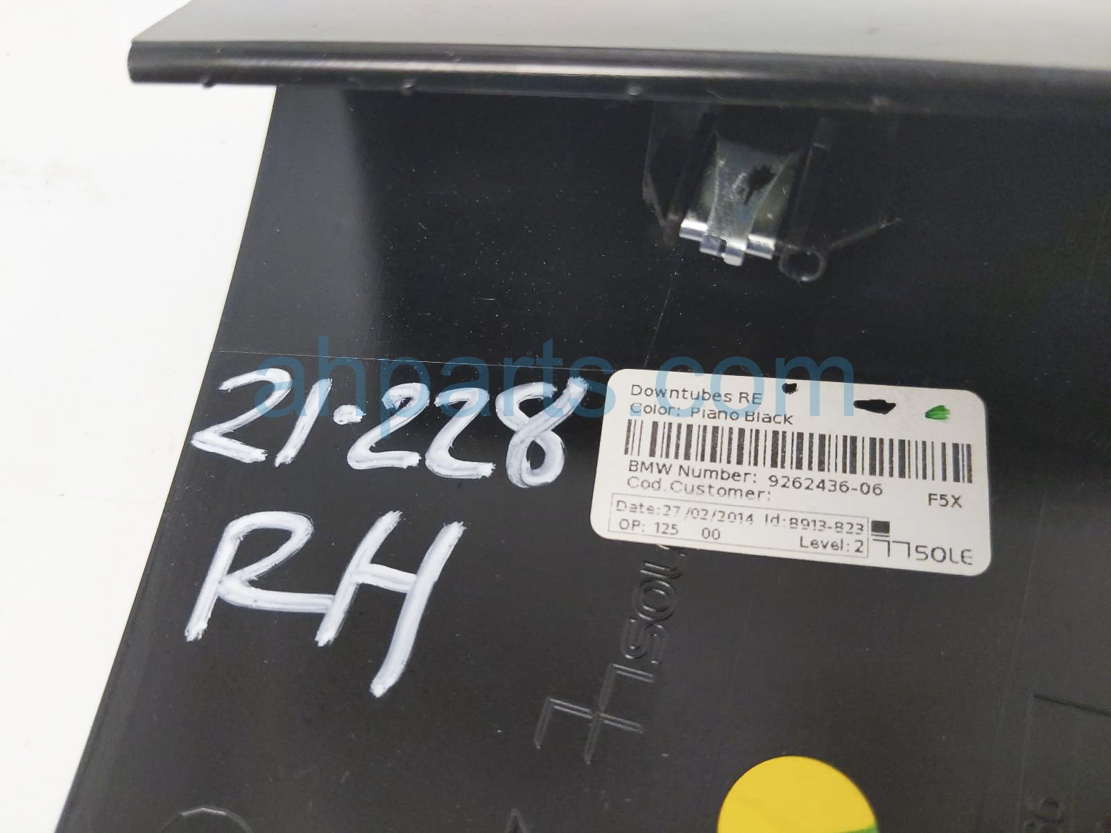 2014 BMW Mini Cooper passenger center console down tube trim** is a used item with a 1 year warranty. This OEM replacement passenger center console down tube trim** is genuine and has part numbers 51-45-9-262-436, and 51459262436. This BMW part sells for $24. This item has the following note: 'Piano black has minor scratches.'