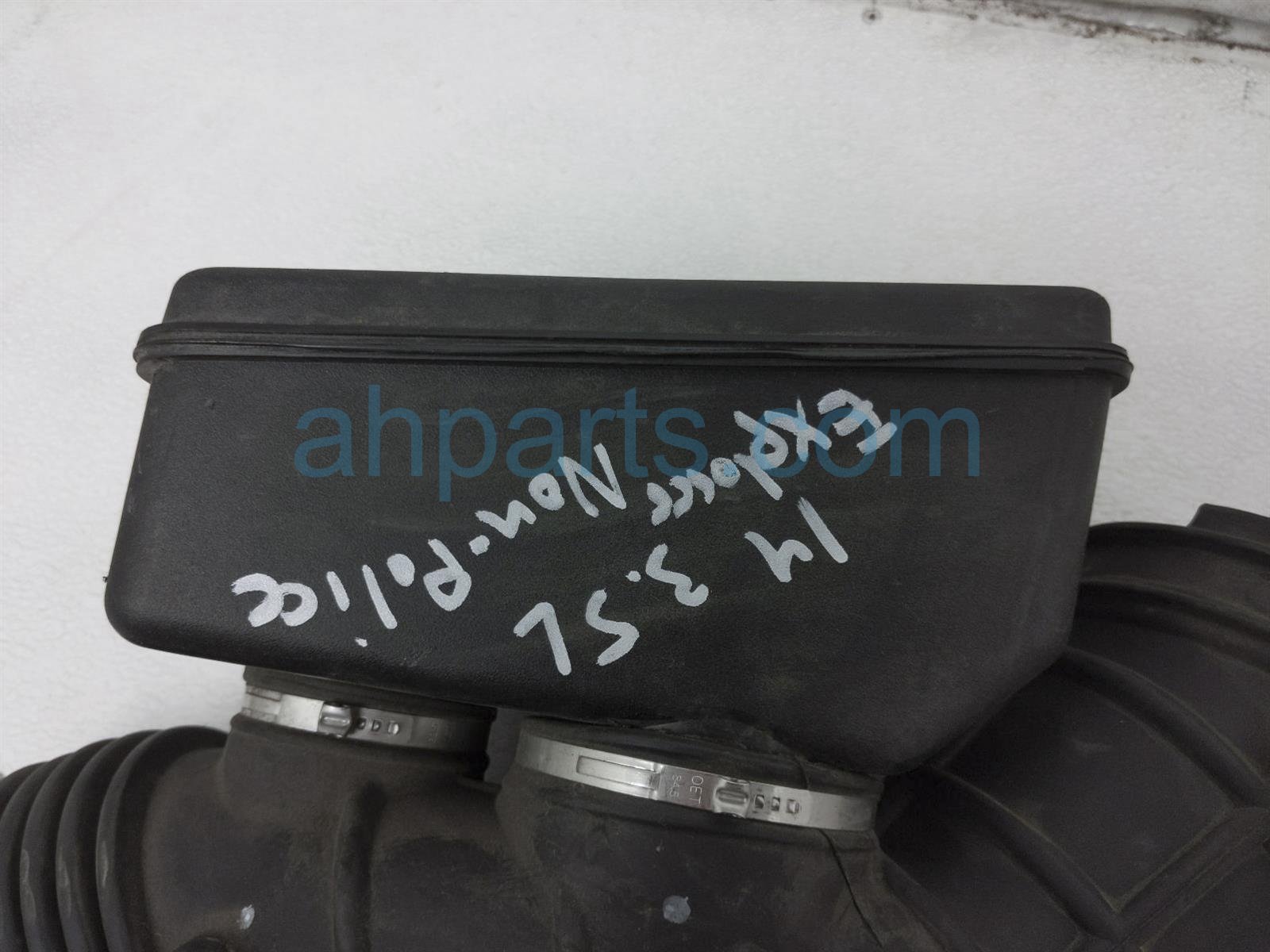 2014 Ford Explorer intake 3.5 air inlet tube is a used item with a 1 year warranty. This OEM replacement intake 3.5 air inlet tube is genuine and has part numbers AE5Z-9B659-G, and AE5Z9B659G. This Ford part sells for $35.