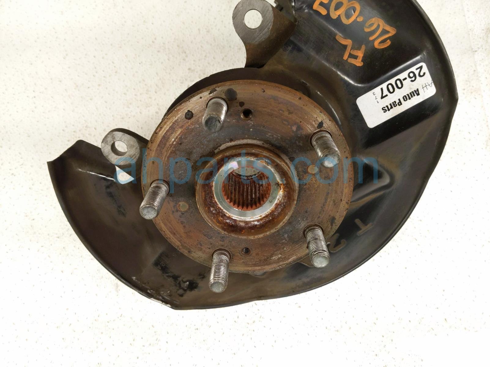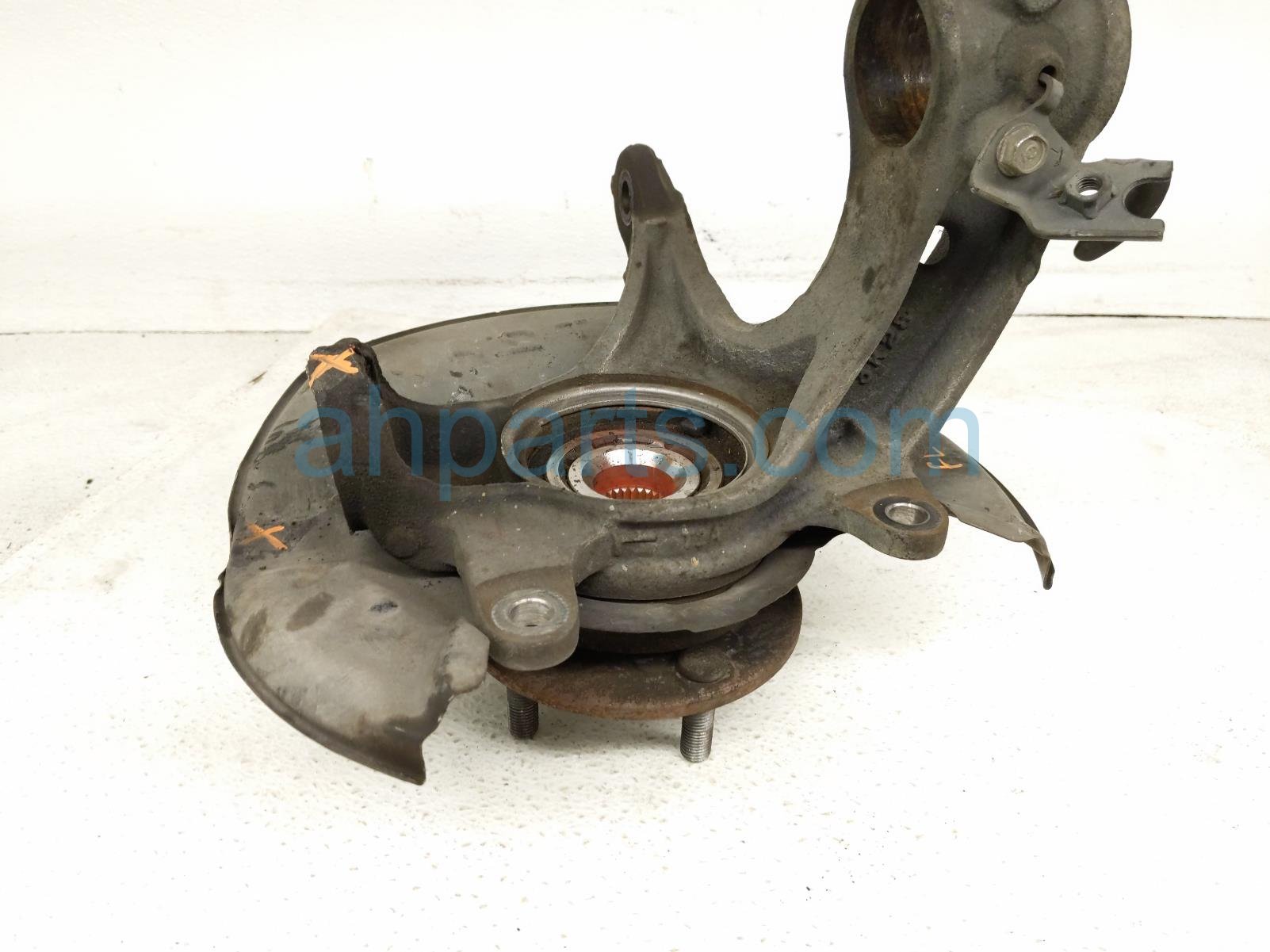 2014 Honda Accord front driver spindle knuckle hub is a used item with a 1 year warranty. This OEM replacement front driver spindle knuckle hub is genuine and has part numbers 45255-T2A-A00, 45255T2AA00, 44600-T2F-A01, 44600T2FA01, 51215-T2A-K01, and 51215T2AK01. This Honda part is for sale (please call for pricing).