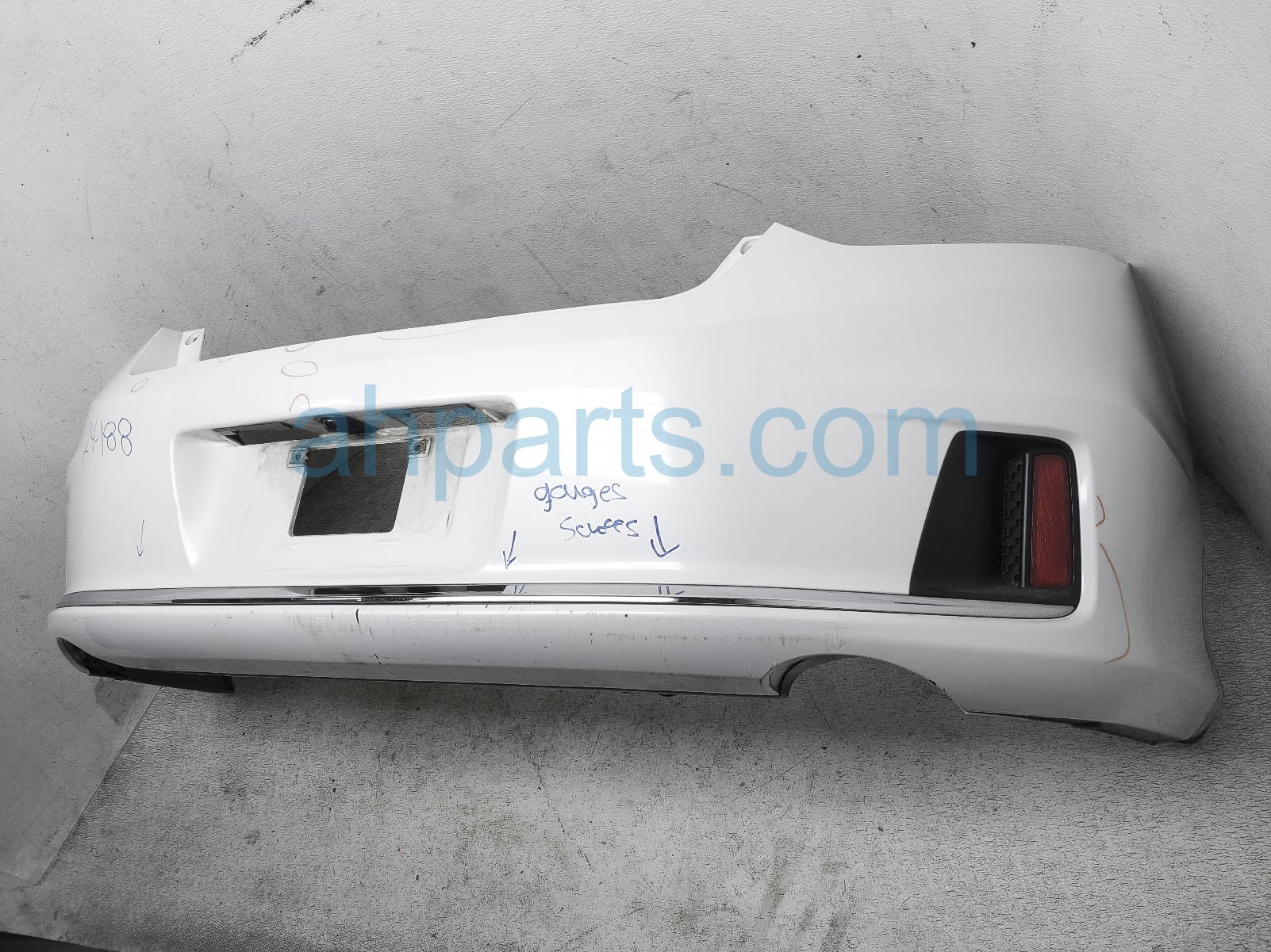 2014 Honda Accord rear bumper cover - white is a used item with a 1 year warranty. This OEM replacement rear bumper cover - white is genuine and has part numbers 04715-T3L-A90ZZ, 04715T3LA90ZZ, 33505-T3L-A02, 33505T3LA02, 33555-T3L-A01, 33555T3LA01, 39530-T3L-A01, and 39530T3LA01. This Honda part sells for $295. This item has the following note: 'This item has scuffs, deep scratches, cracks on the trim, and some broken tabs - grade b.'
