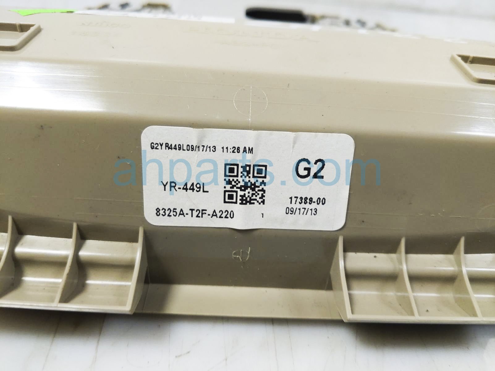 2014 Honda Accord roof console / map light - tan is a used item with a 1 year warranty. This OEM replacement roof console / map light - tan is genuine and has part numbers 83250-TA0-A51ZL, and 83250TA0A51ZL. This Honda part sells for $39.
