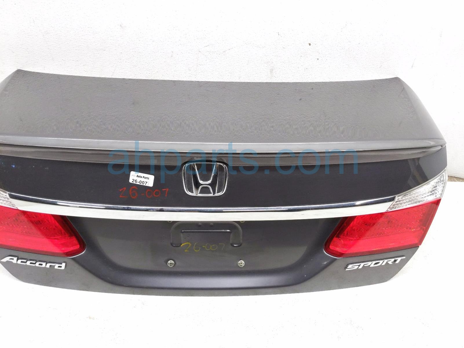 2014 Honda Accord trunk / decklid w/spoiler - gray is a used item with a 1 year warranty. This OEM replacement trunk / decklid w/spoiler - gray is genuine and has part numbers 68500-T2F-A30ZZ, 68500T2FA30ZZ, 71700-T2F-A01ZC, 71700T2FA01ZC, 34150-T2A-A01, 34150T2AA01, 34155-T2A-A01, and 34155T2AA01. This Honda part is for sale (please call for pricing).