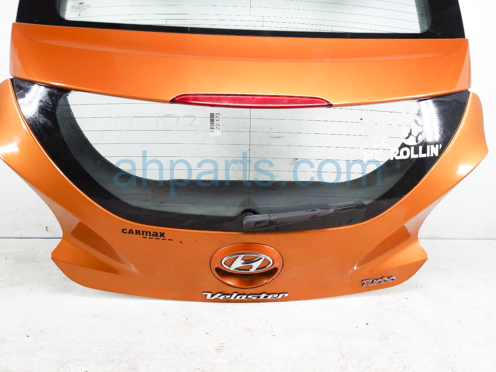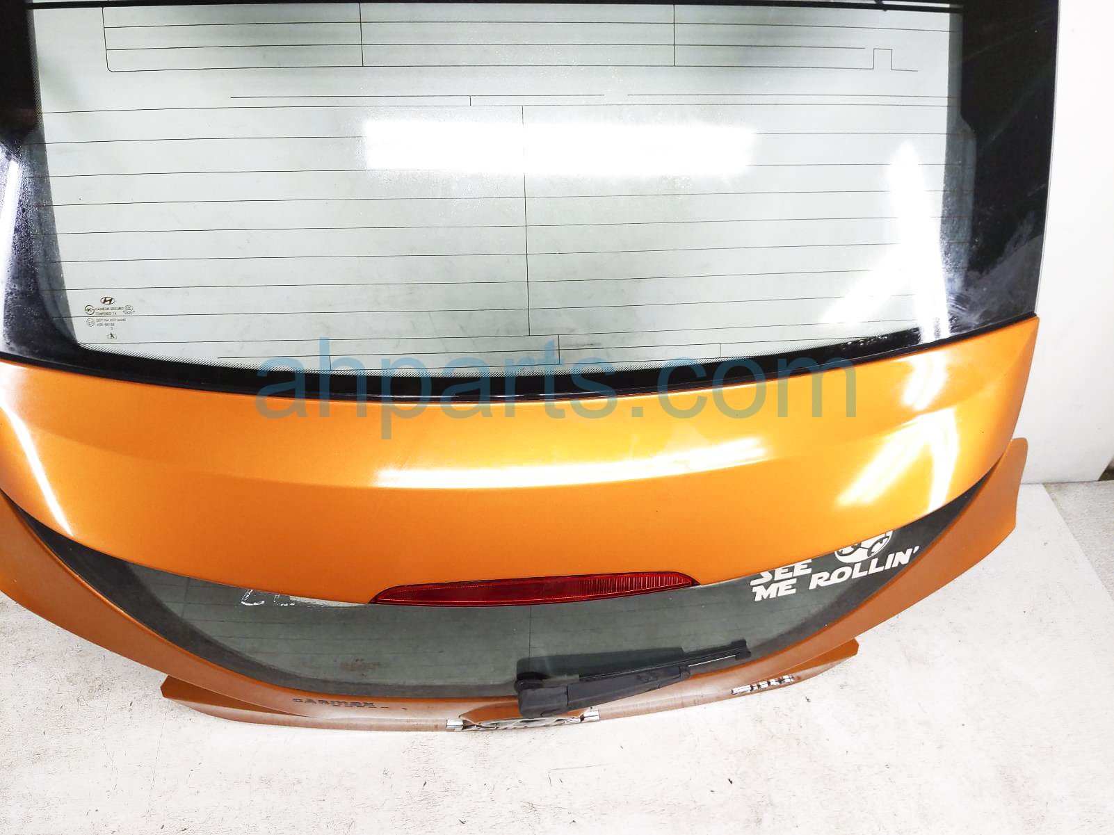 2014 Hyundai Veloster deck trunk lid lift gate / tail gate - orange is a used item with a 1 year warranty. This OEM replacement deck trunk lid lift gate / tail gate - orange is genuine and has part numbers 87110-2V500, 871102V500, 87110-2V110, 871102V110, 73700-2V014, and 737002V014. This Hyundai part sells for $300.